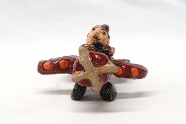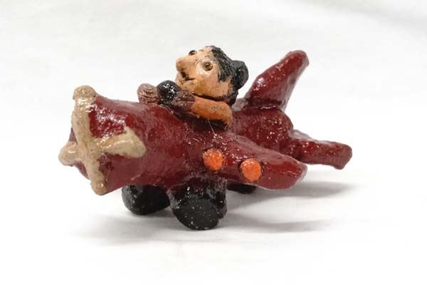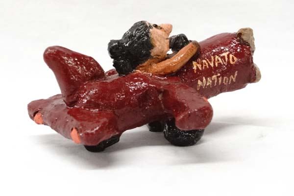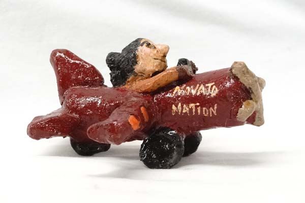 Native American Navajo Folkart Pottery Airplane ''Navajo Nation'' and Pilot by Jonathan Chee, measures 5''L x 3''H, hallmarked on bottom JC, wing has been glued