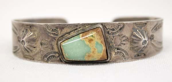 Native American Navajo Fred Harvey Style Sterling Silver Turquoise Bracelet, inside measures 6.25'' which includes opening x .75''W