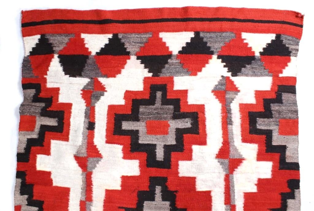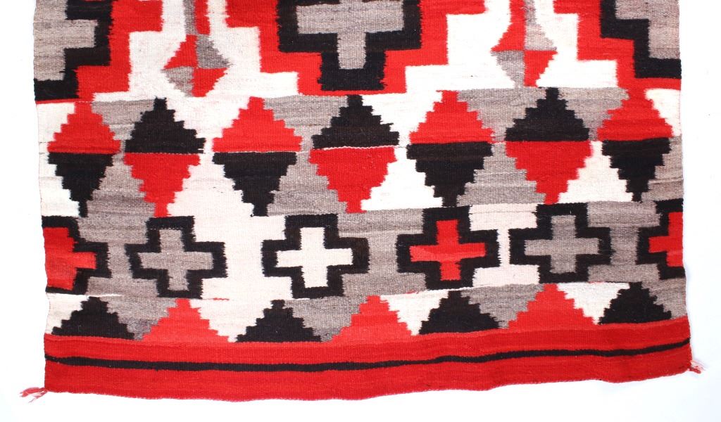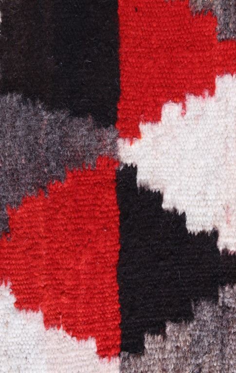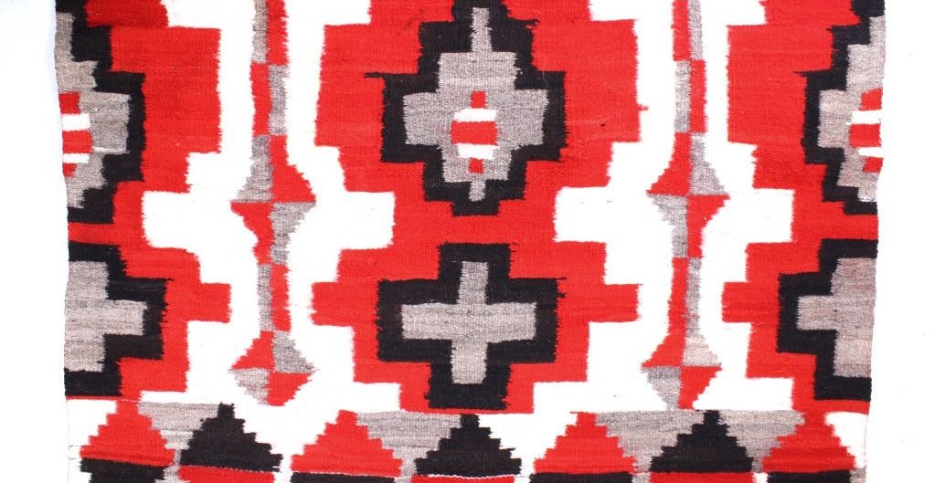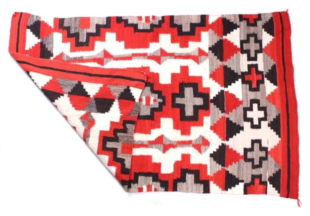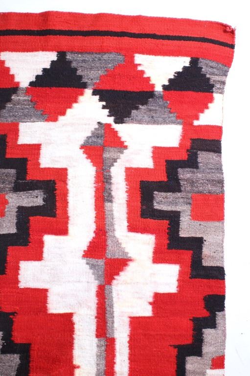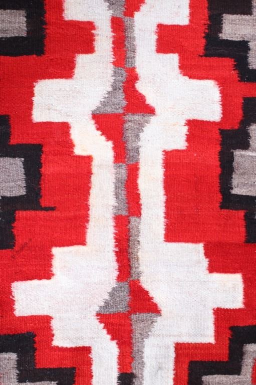 For your consideration is this very rare original circa early 1900's Navajo Native American Ganado Rug. Located in the southwest of Crystal in the geographical center of the Navajo Reservation the Ganado pattern of weaving was established by Lorenzo Hubbell in late 1800. The motif generally consists of one or more stepped diamonds or stepped and embellished triangles. The colors are usually dominated by a red background with gray, ivory, black and red designs surrounded by geometric border. This rug shows pristine craftsmanship made from 100% soft high-quality wool and shows the red background with many good examples of the stepped diamonds, and multiple colors of crosses. The coloration is done in natural pigmented red, gray, black, and ivory. The rug is believed to be early 1900's work and is in very good condition. The measurements of the rug are 84" x 52".