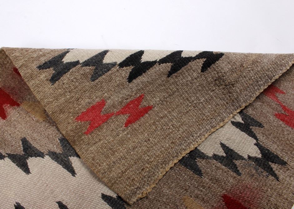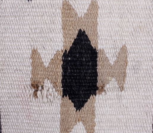Available in this lot for bidding is a Navajo Native American Indian Genado pattern wool rug. The rug shows a predominantly speckled brown background, with off-white, and black stepped diamonds. Additionally, the rug is accented with soft reds, and light khaki. The rug shows mineral dyed colors, and a thick weft. The rug originates from the early part of the 1900's, and shows fair condition overall. The rug does show some apparent color bleeding, and some slight degrading to the weave. The rug measures 37 1/2" x 18 1/2".