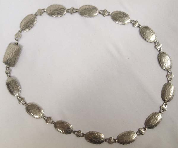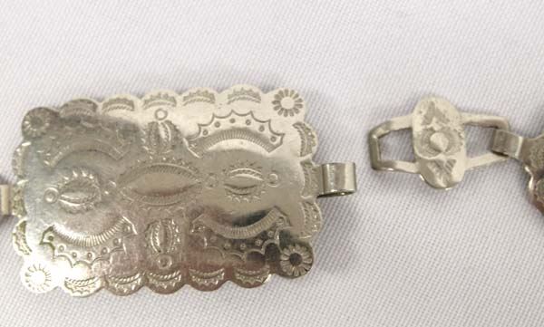 Navajo German Silver Stamped Concho Belt, measures 38.5''L x 1.25''W, 107g in total wt.