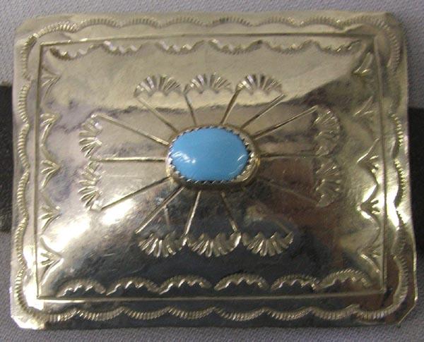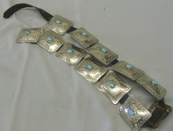 Navajo German Silver Turquoise Concho Belt. Belt is 40.25'' long. The conchos are 2''x2.5''. SHI $20.
