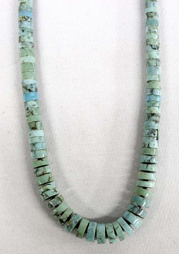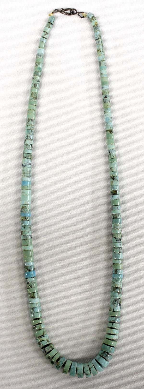 Native American Navajo Graduated Turquoise Heishi Bead Necklace, measures 18''L end to end with largest bead measuring .25''D