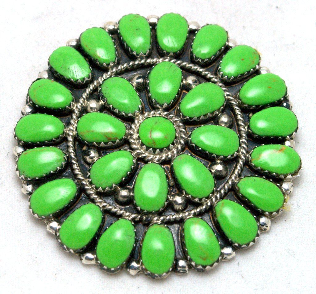 Navajo Green Turquoise Medium Circle Large Stone Pendant & Pin - Juliana Williams