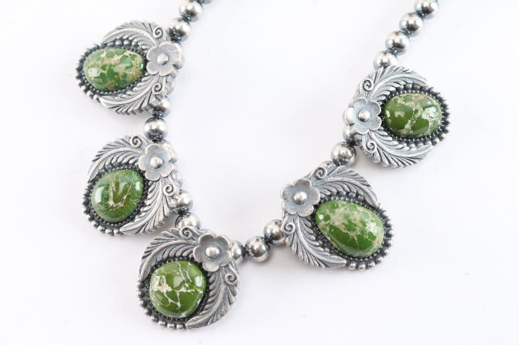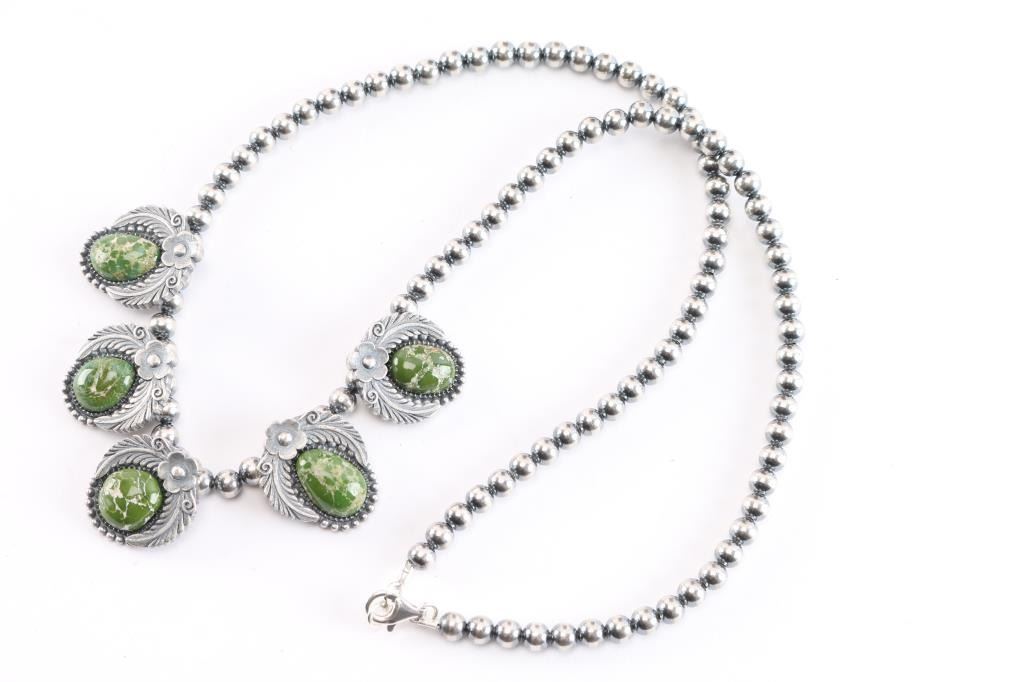 With 5 Oval Pendants With Floral Motif All Sterling.