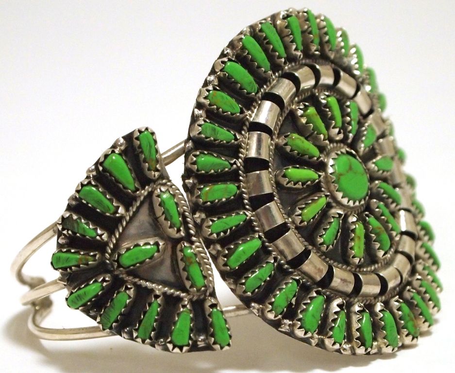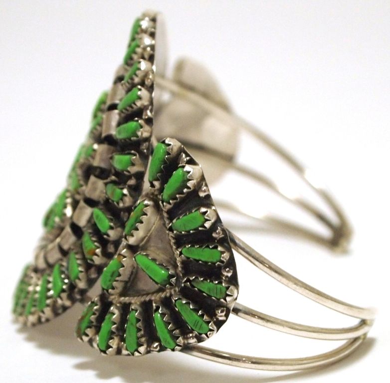 Navajo Green Turquoise Needlepoint Sterling Silver Cuff Bracelet - Violet Begay