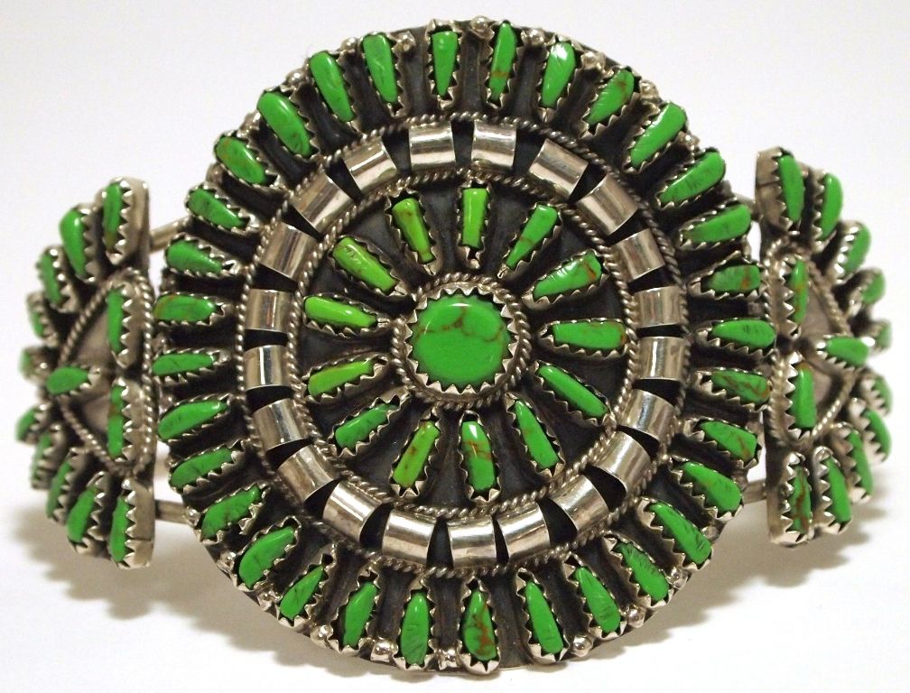 Navajo Green Turquoise Needlepoint Sterling Silver Cuff Bracelet - Violet Begay
