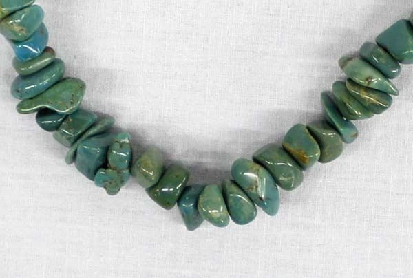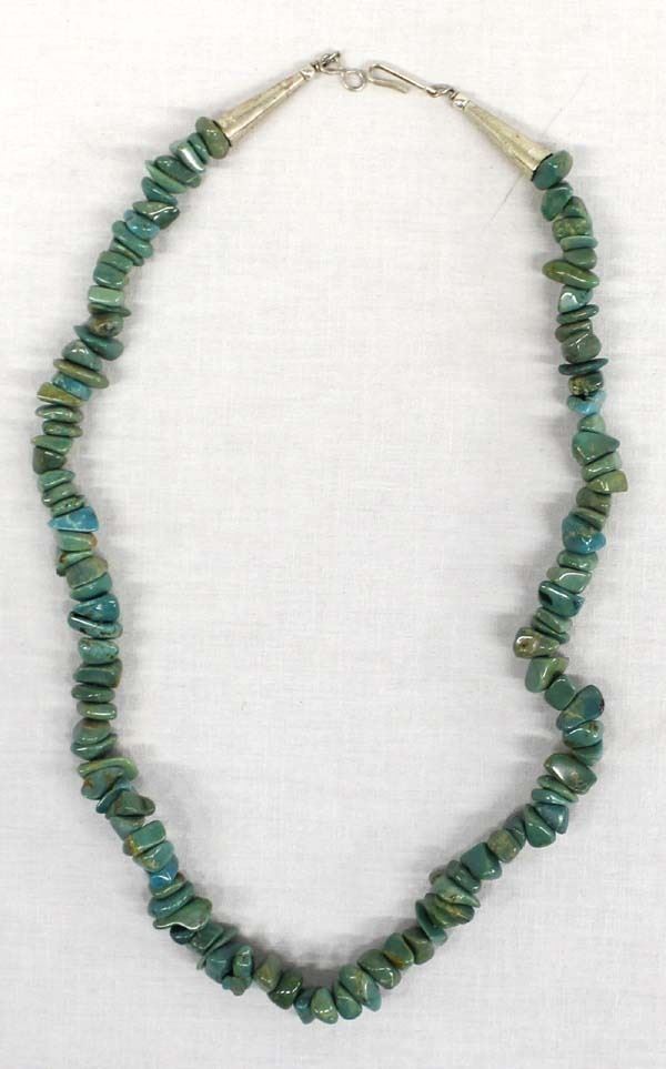 Native American Navajo Green Turquoise Nugget Necklace, measures 16''L end to end, nuggets measure approximately .5''L, embellished with sterling cones and clasp