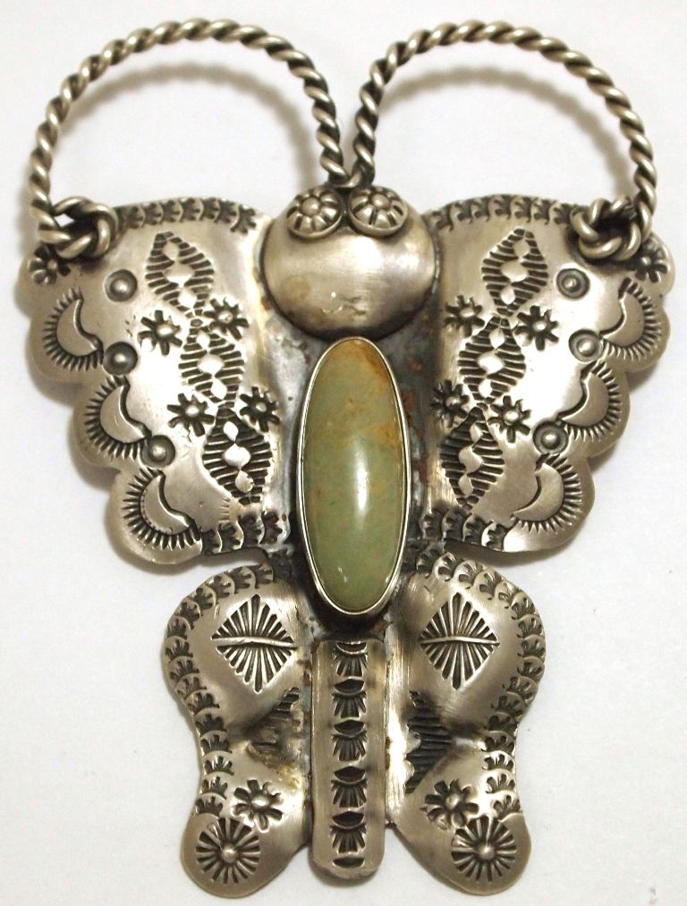 Navajo Green Turquoise Sterling Silver Butterfly Pendant & Pin - Harrison Joe