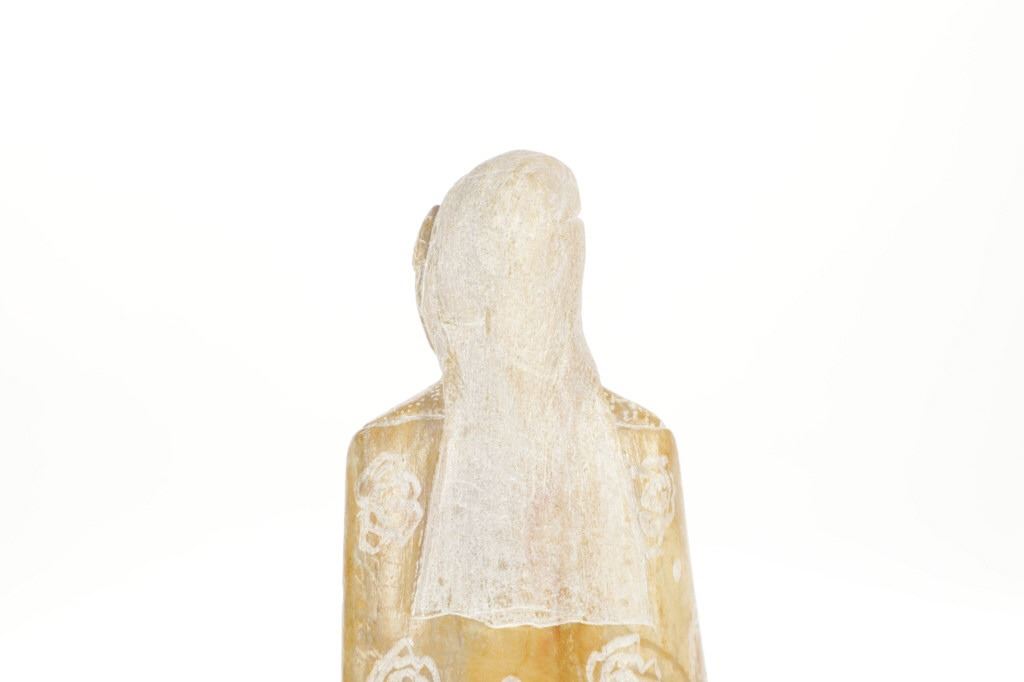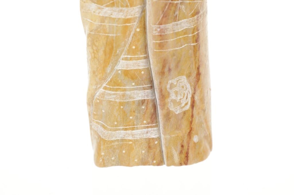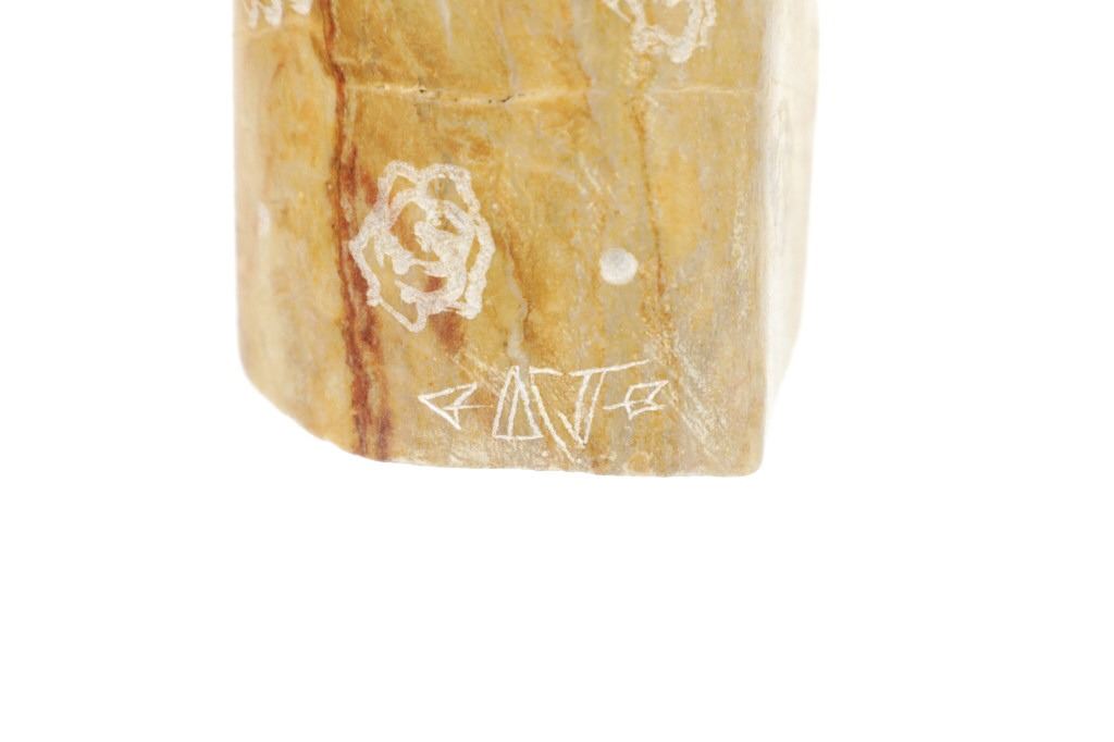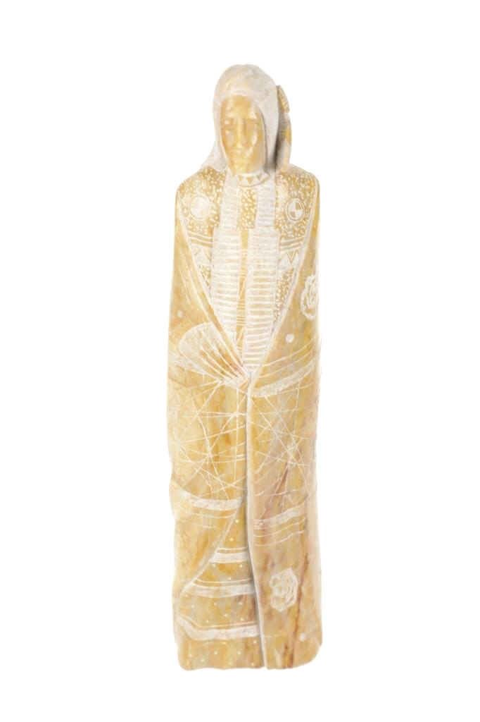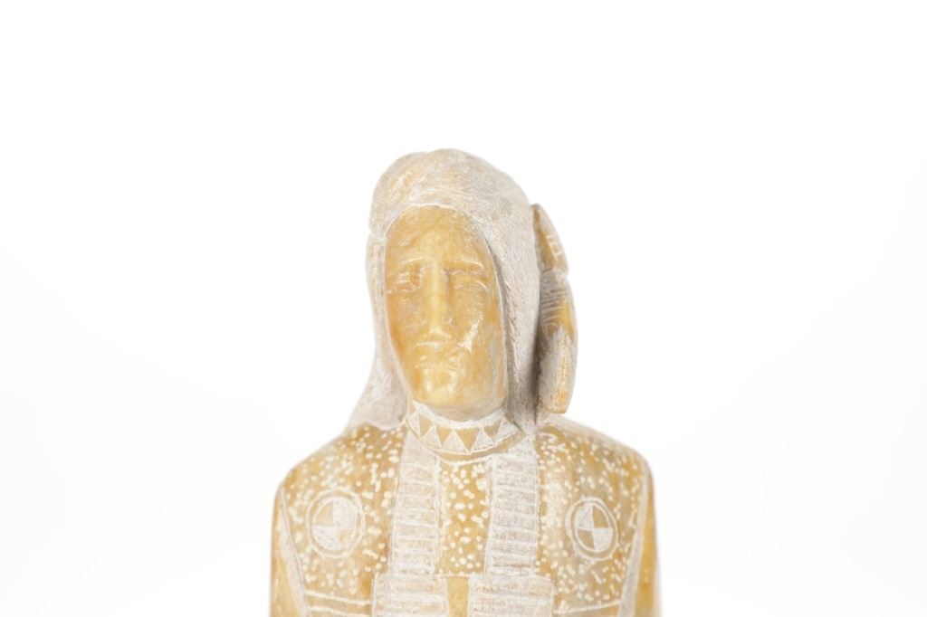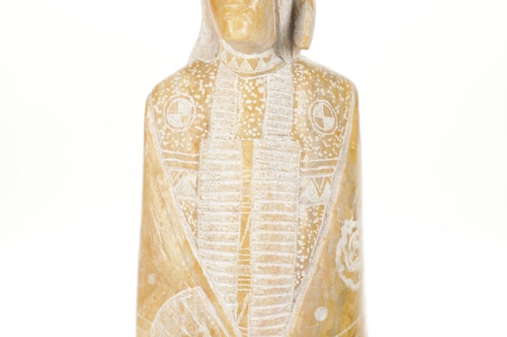 For your consideration, this lot includes a Hand Carved Alabaster Sculpture, untitled. The sculpture is signed on the bottom of the back, appears to be the hallmark of Oreland C. Joe. A master sculptor, Oreland is world renowned for his work in stone and bronze, and is primarily known for his work with marble, alabaster, and limestone. His accomplishments are numerous, one being the first Native American to be admitted to the prestigious Cowboy Artists of America in 1993. His works can be found in private, corporate and museum collections in the United States and abroad. Oreland is of Diné (Navajo) and Ute descent.