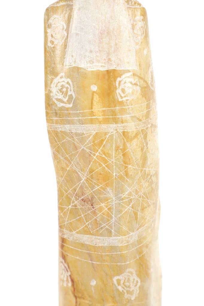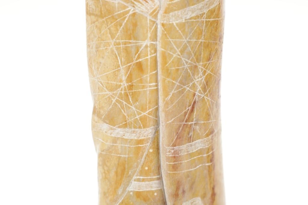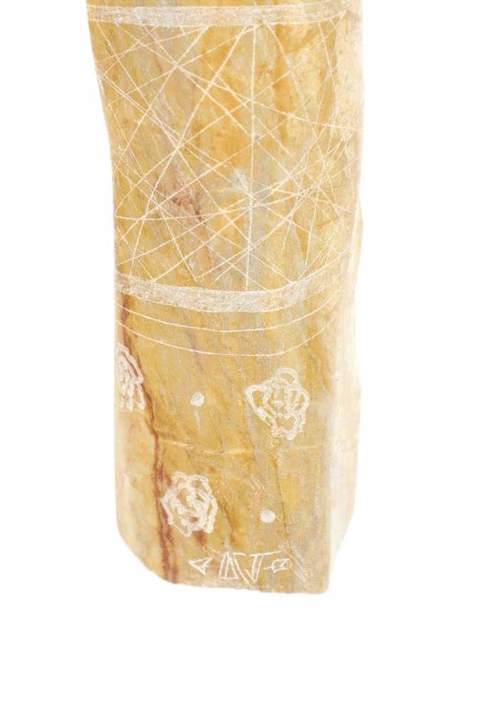 The pale brown reddish veined sculpture is in good overall condition, no marring noted, measures12.25"H, 3" x 3" at the base.