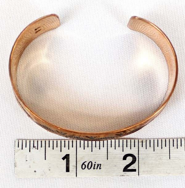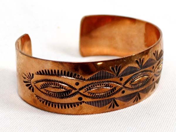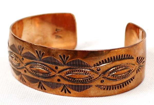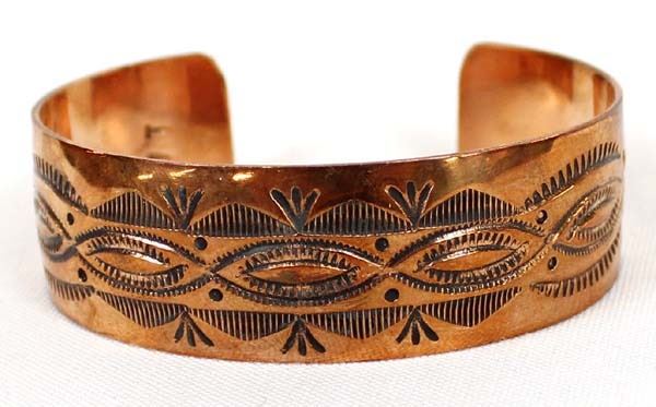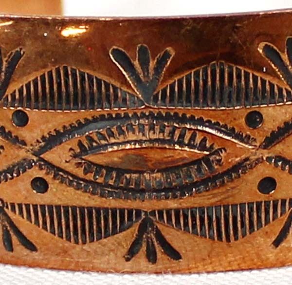 Native American Navajo Hand Stamped Copper Cuff Bracelet by Vera Tsosie, inside measures 6.5'' which includes the gap x 1''W, hallmarked VT