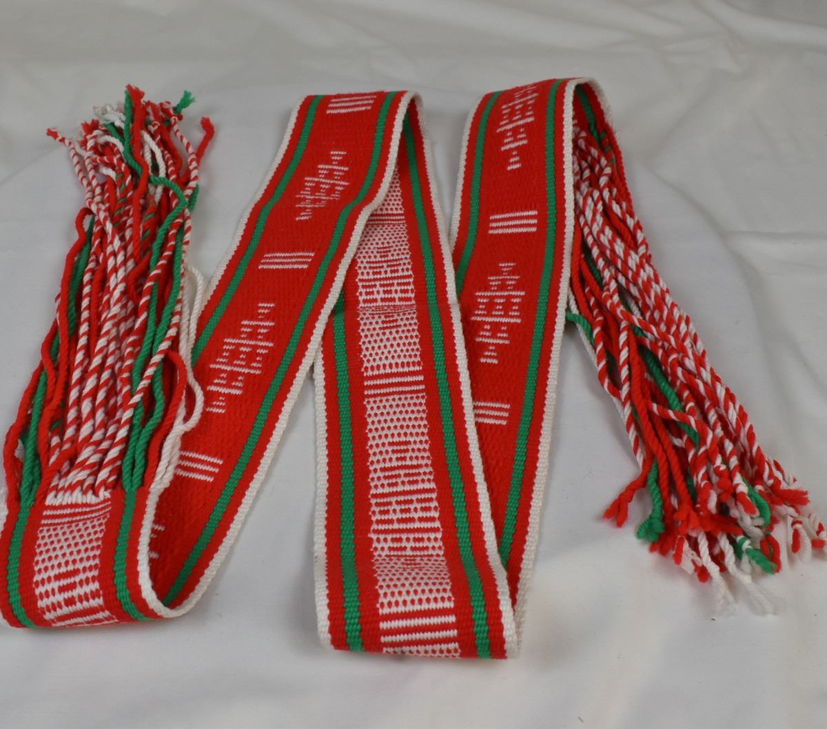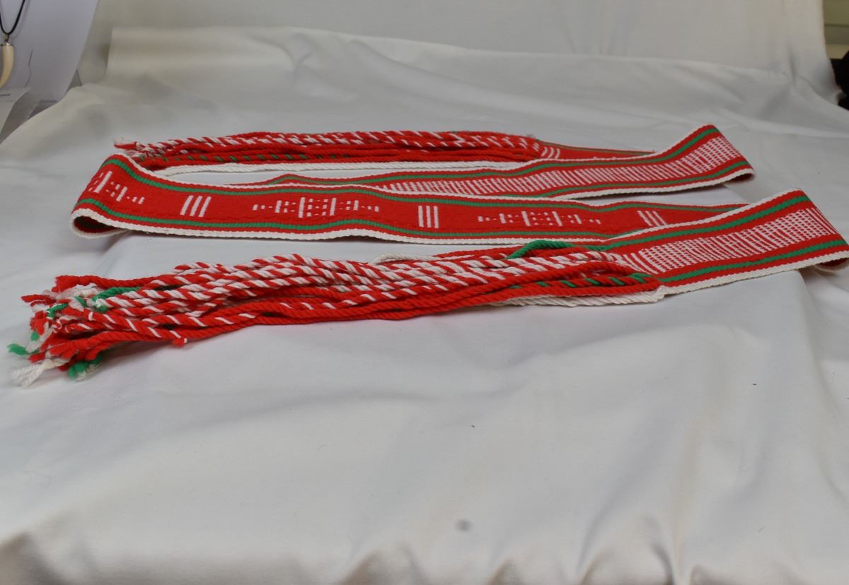 Native American Navajo Hand Woven Wool Textile Dance Sash by Laverne Billy, measures 6' 6'' which includes the fringe, like new, beautiful colors