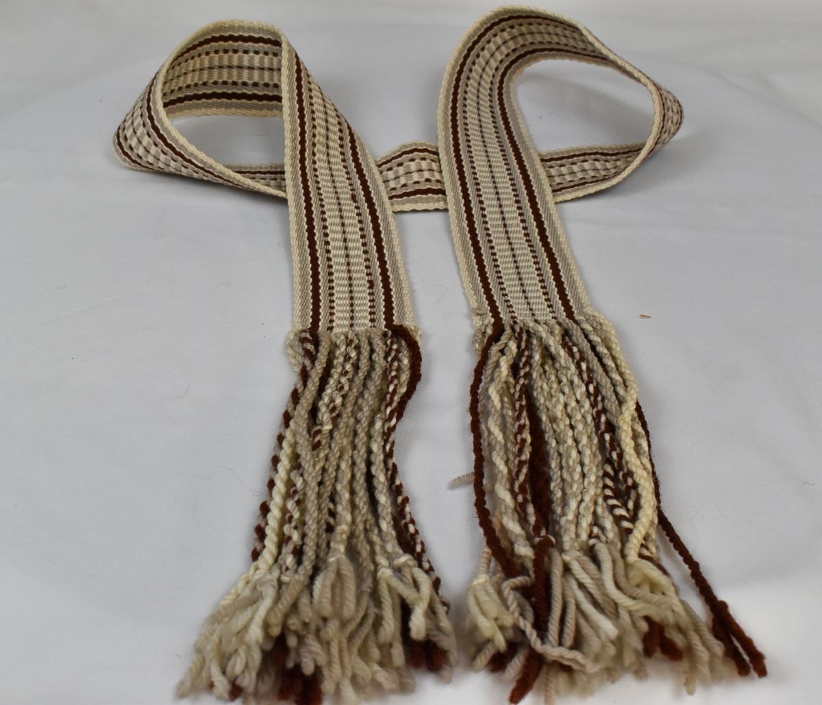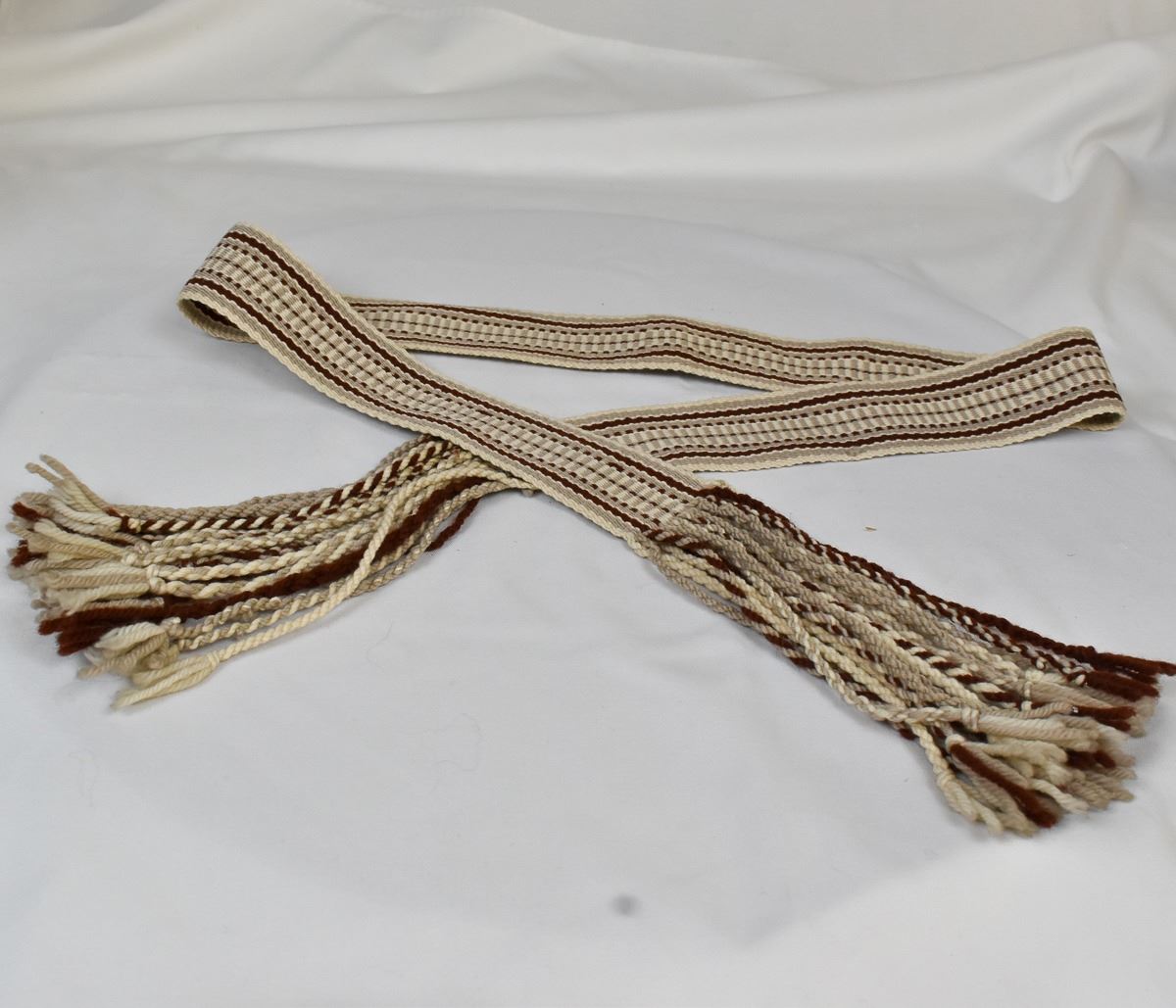 Native American Navajo Hand Woven Wool Textile Fringed Dance Sash, measures 60''L which includes the fringe
