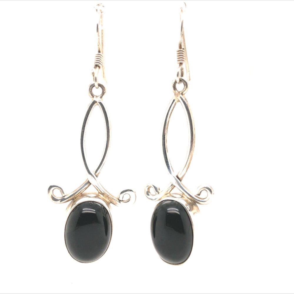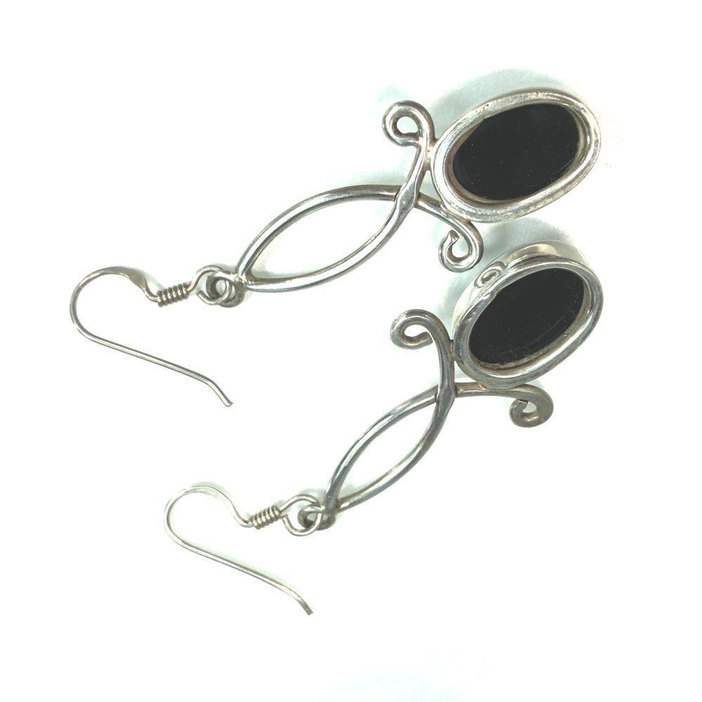 Navajo Handmade sterling silver AAA Black Onyx Earring's L 2 " x W 3/4 " french wire