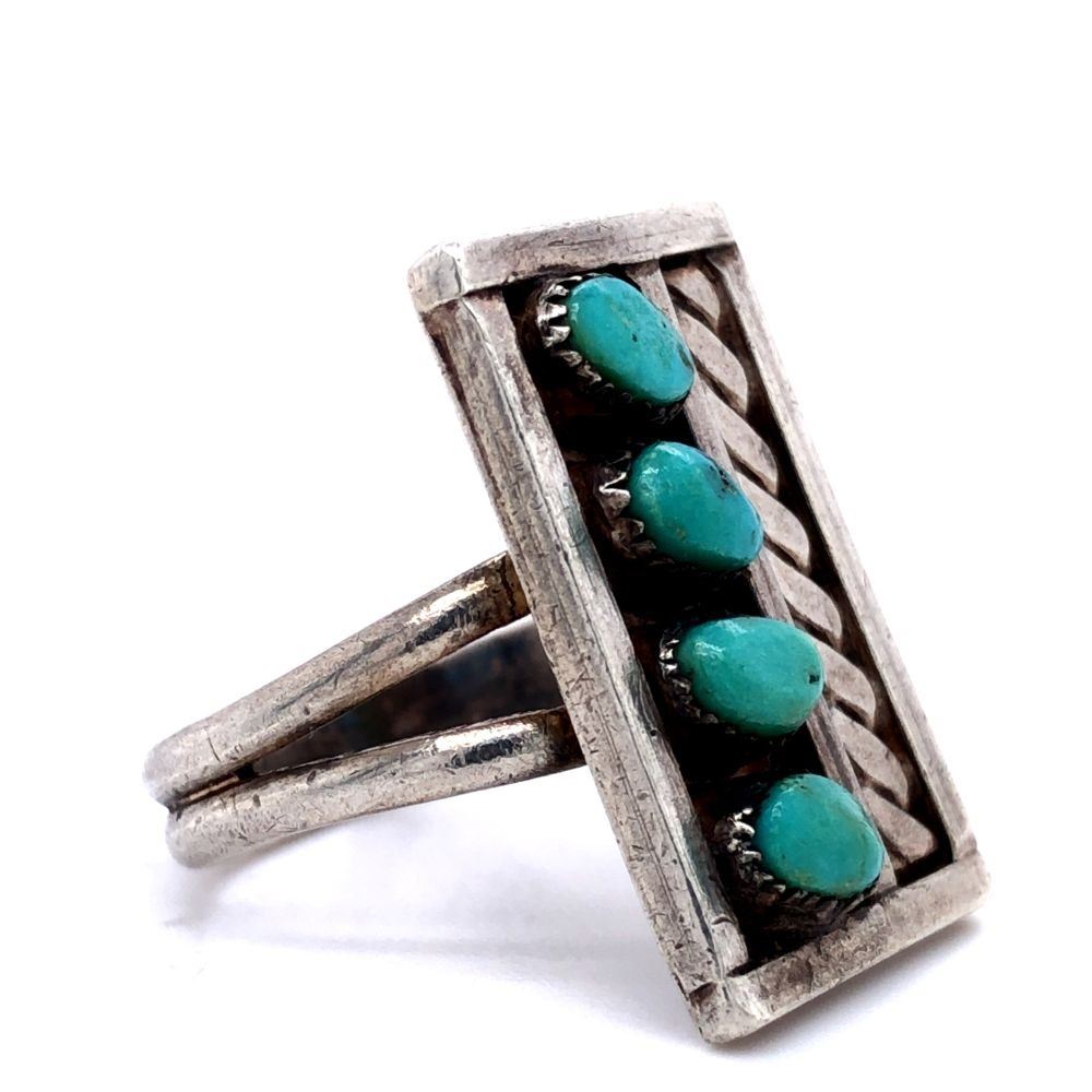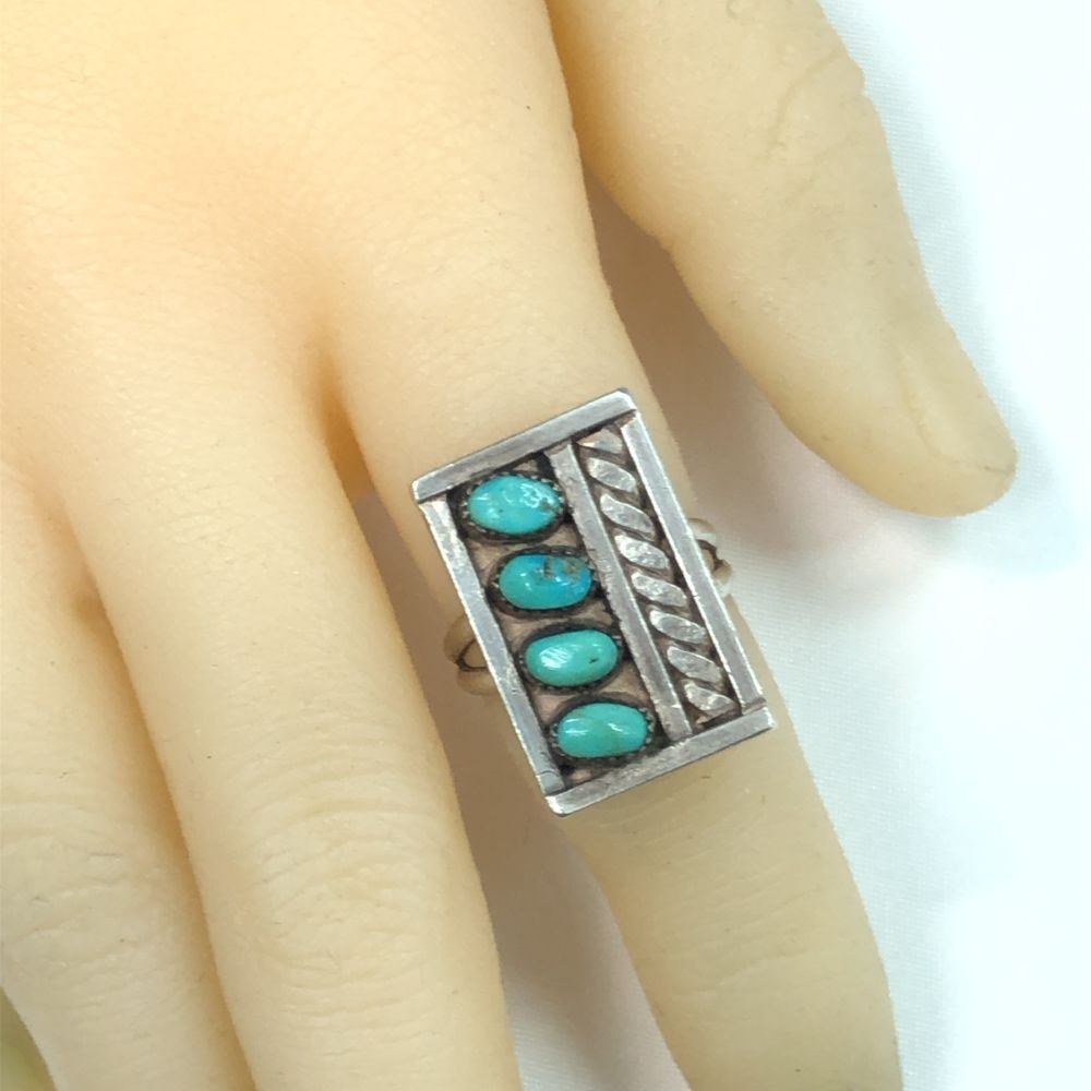 Navajo Handmade vintage Kingman Turquoise hand signed Ring size 6 1/4 L 7/8 " W 1/2 "