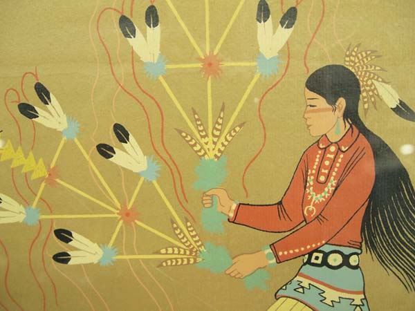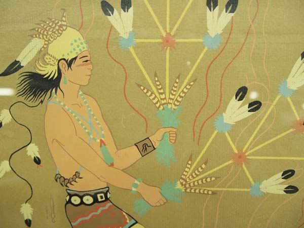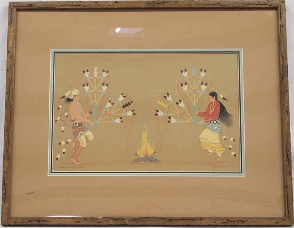 Native American Navajo Harrison Begay Navajo Feather Dancers Silkscreen, custom framed, under plexiglass, triple matted, Artist Bio: Harrison Begay (Haashk‚ yah N¡y , ''Warrior Who Walked Up to His Enemy'') (November 15, 1917 - August 18, 2012) was a renowned Navajo painter, perhaps the most famous of his generation.