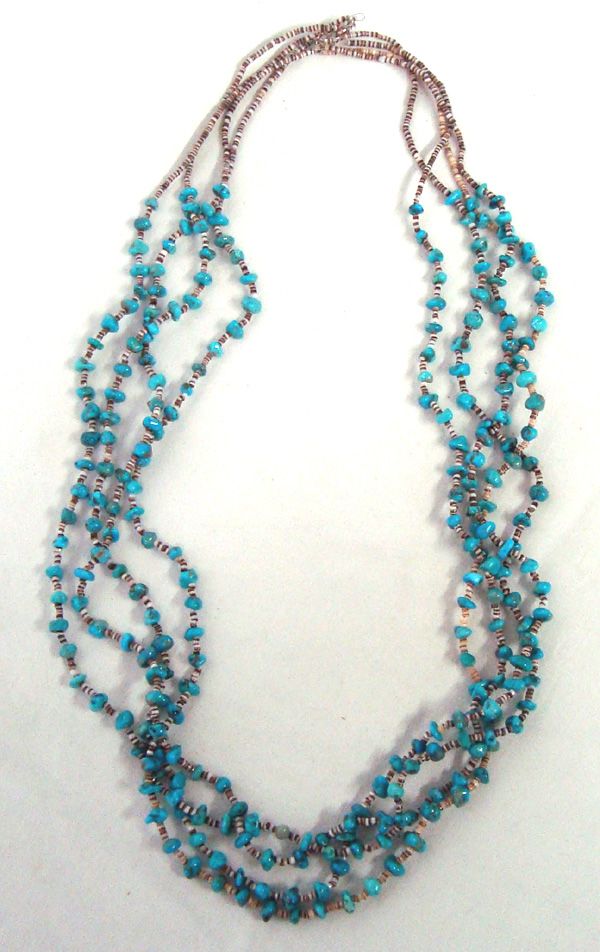 Navajo Heishi Turquoise Nugget Multi-Strand Necklace. Heishi (pronounced hee-shee) has come to refer to hand-made tiny beads made of any natural material. This gorgeous piece is approx 16.5'' long.