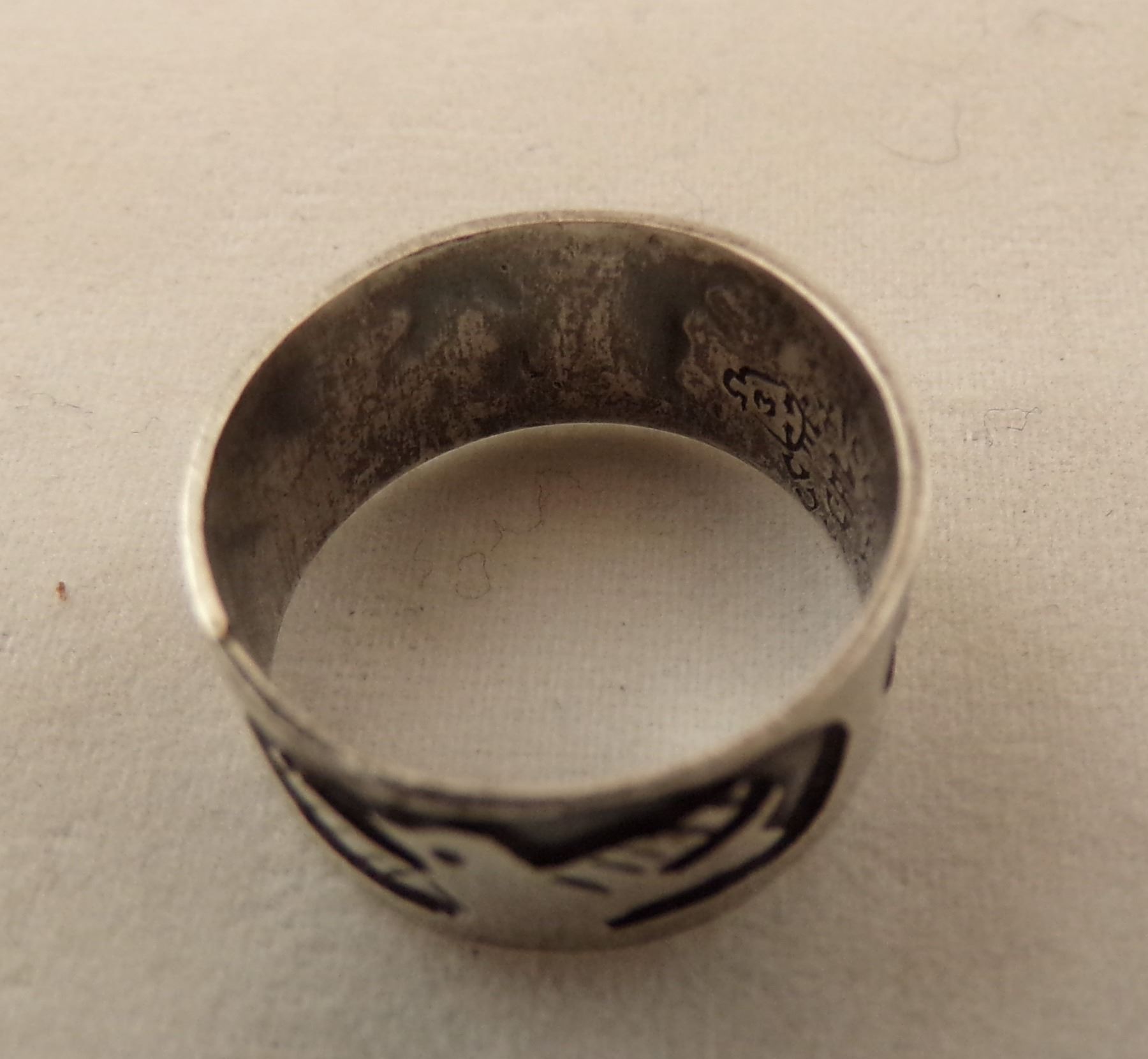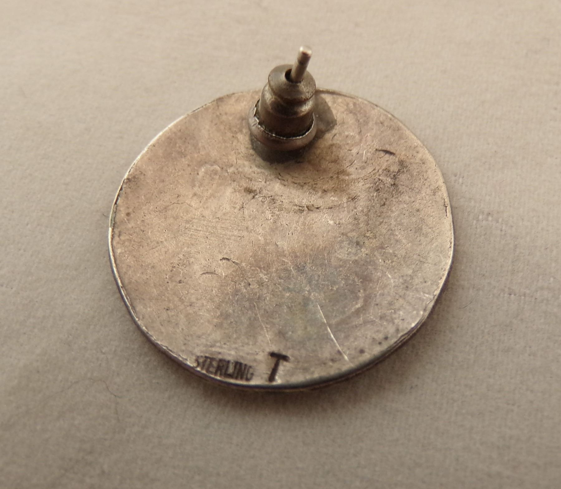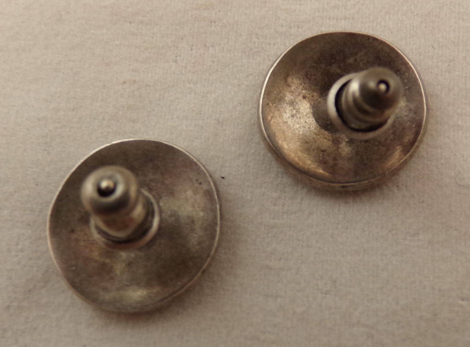 Navajo, Hopi, and Taxco Jewelry, includes 1. Taxco Ring, size 7.5 and measures 5/8''W, hallmarked and stamped .925 2. Hopi Post Earrings, measure .5''D 3. Navajo Thunderbird Post Earrings, hallmarked T and stamped sterling