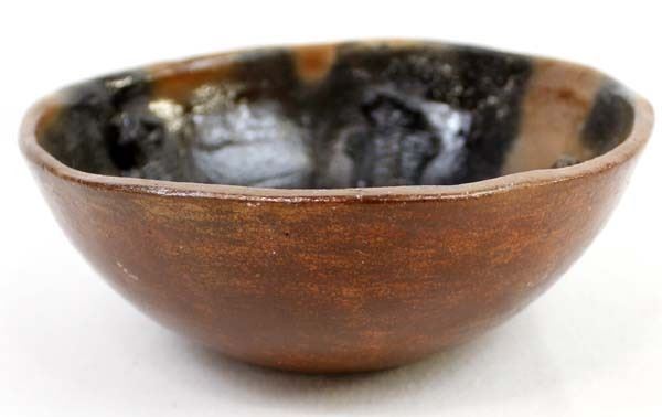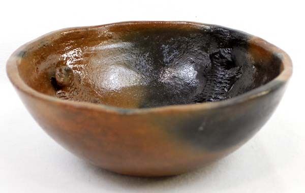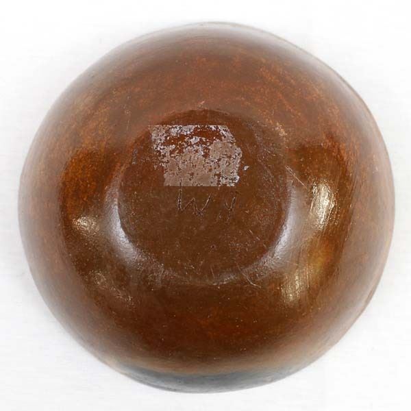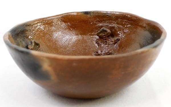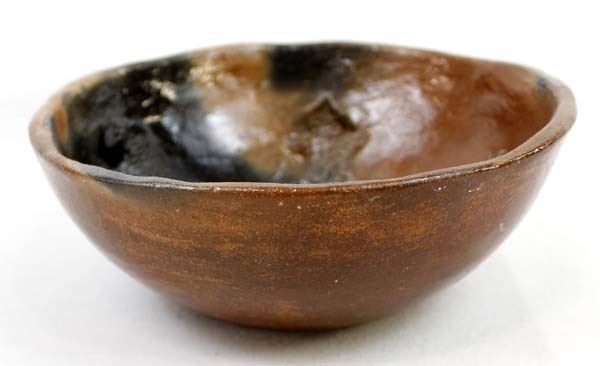 Native American Navajo Horned Toad Pine Pitch Pottery Bowl by Betty Manygoats, measures 2.5''H x 6.5''D and has artist's initials on the bottom
