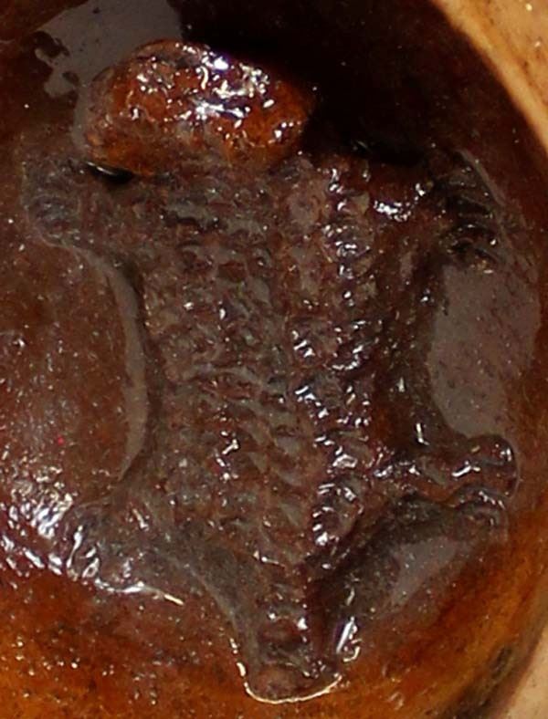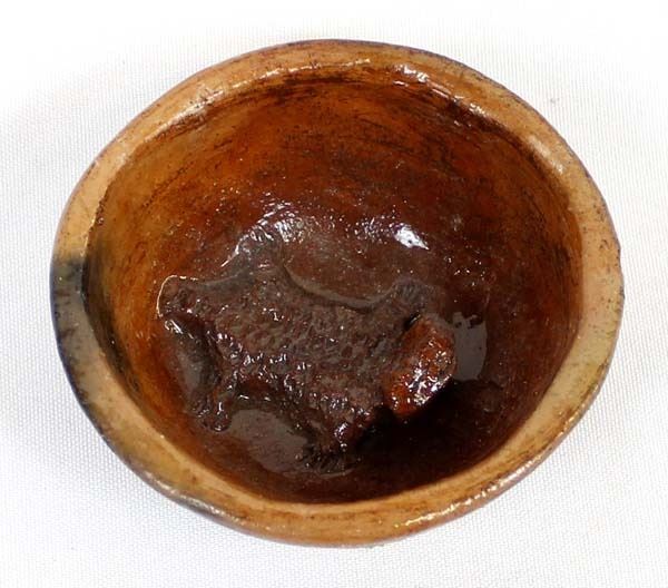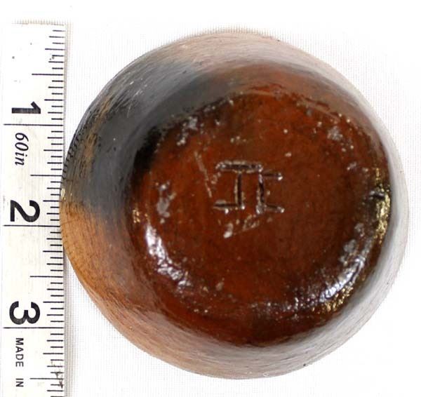 Native American Navajo Horned Toad Pine Pitch Pottery Bowl by Jonathan Chee, measures 3.5'' x 1.5'' and has artist's initials on the bottom