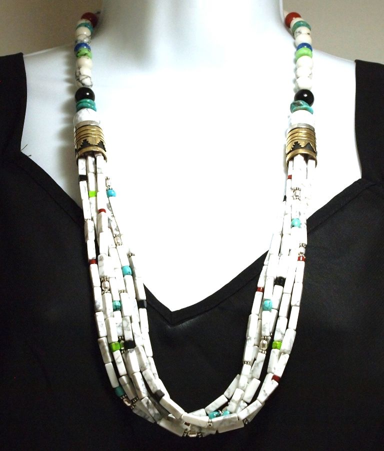 Navajo Howlite & Multi-Stone 6-Strand Necklace - Tommy Singer