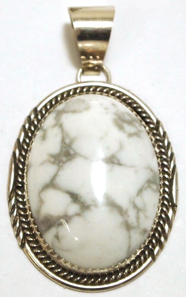 Navajo Howlite Sterling Silver Pendant - Herman Lee