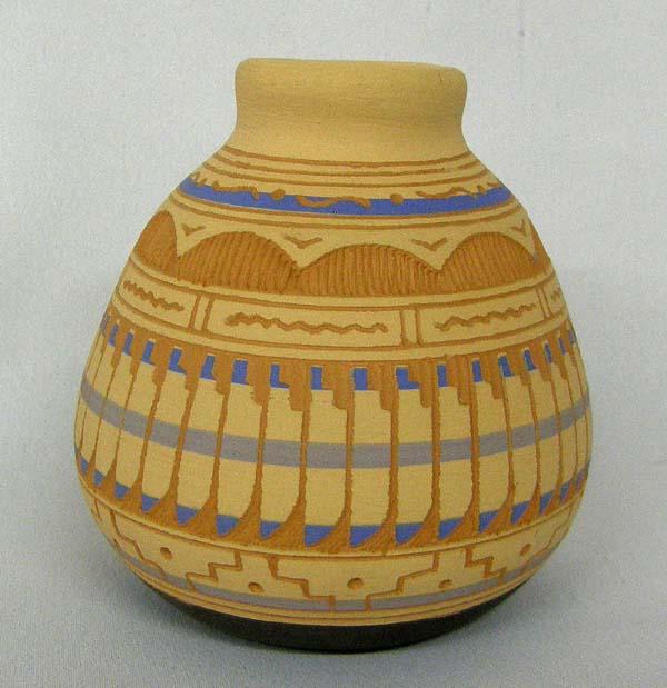 Navajo Incised Jar by Tanya and Genie H. Bennett, measures approx. 3.5'' x 3.25''. SHI $20.