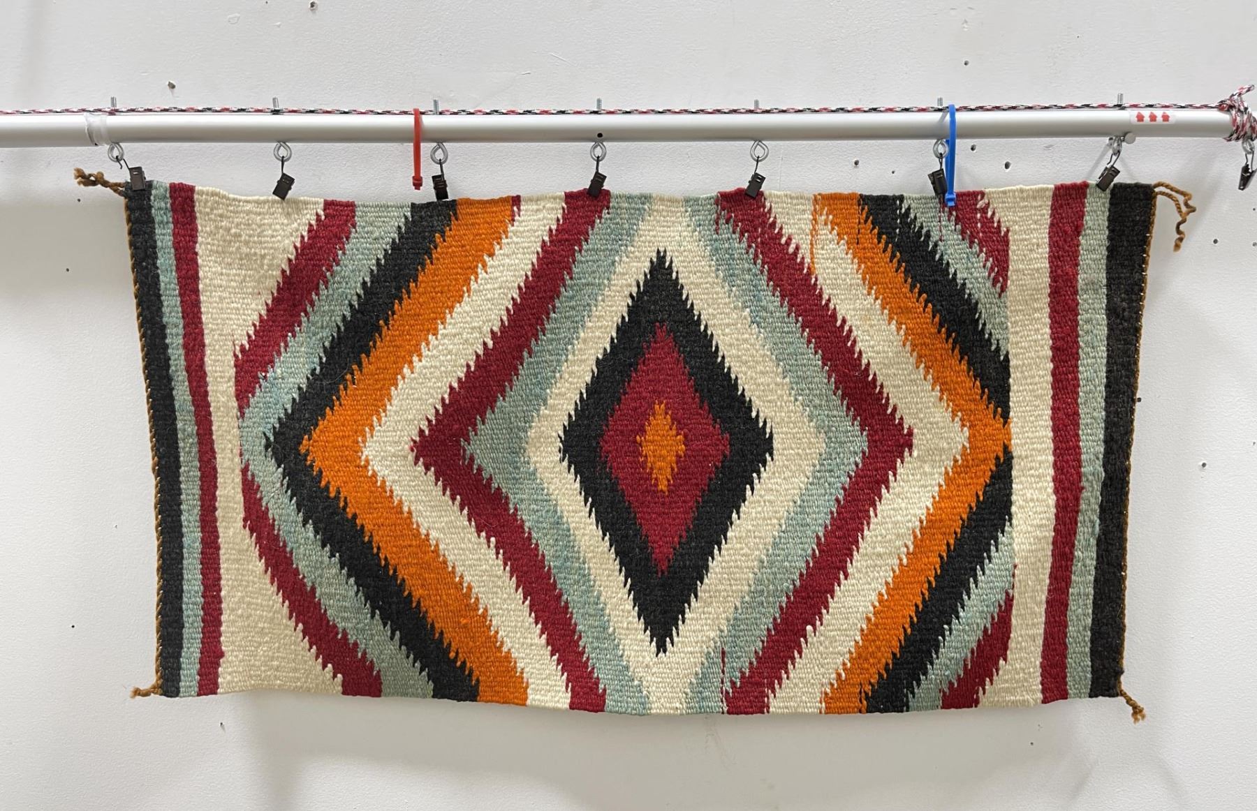 Nice older rug. 1950s-60s. 17 1/2" by 32 1/2".
