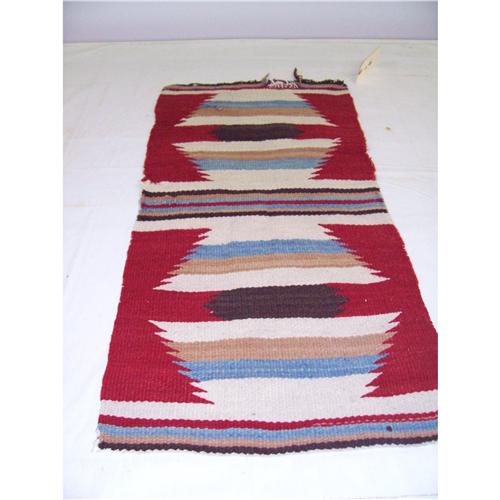 Indian Gallup Throw Blanket 17 x 34 With Very Bright & Exceptional Blues & Reds