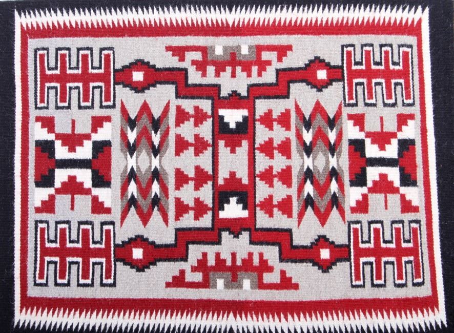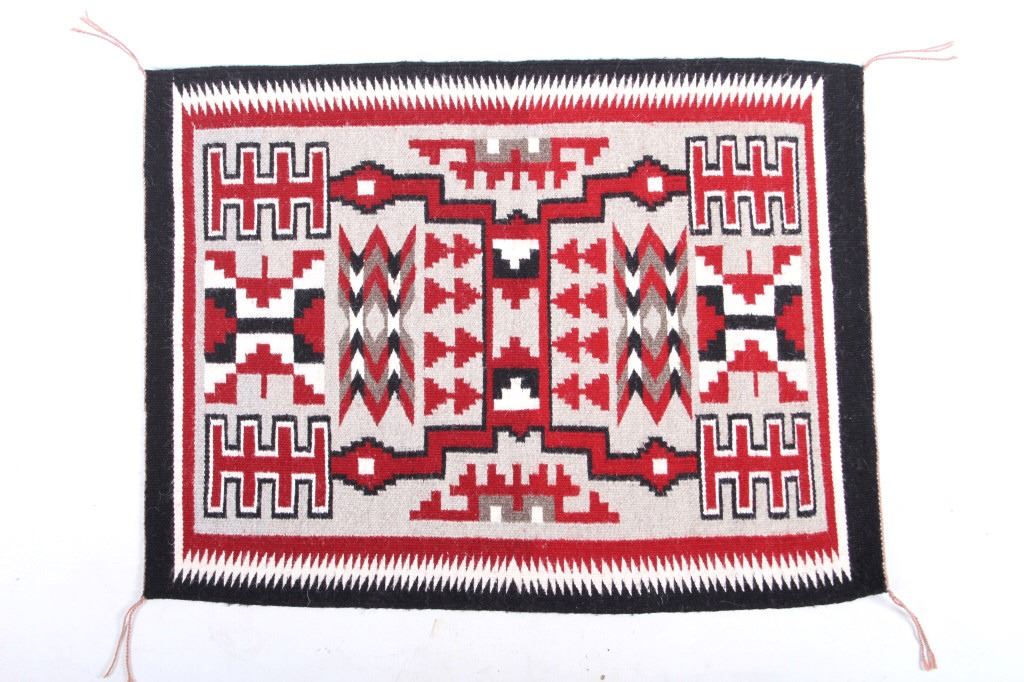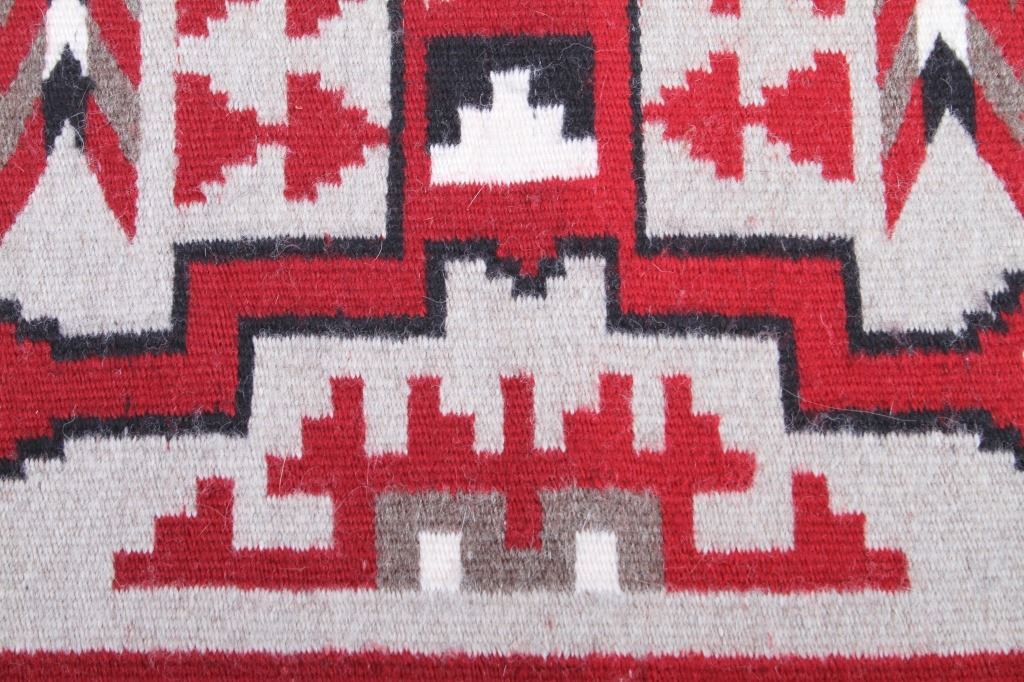 This is a Navajo Native American Indian Klagetoh pattern rug. The rug shows bright colors with a very tight knot pattern. The rug has extraordinary quality and detail with excellent traditional designs. The rig is from the mid 20th century and shows very well preserved good condition. Measures "W x "H.