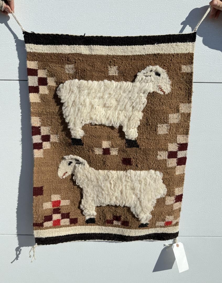 Woven by Fannie Pette. 23" by 30". Shiprock Trading Post Tag.