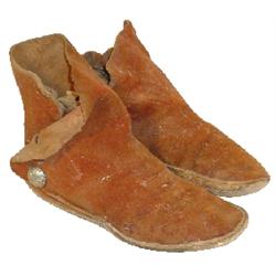 Navajo Indian moccasins, buffalo hide w/silver concho, adult size, 2nd concho missing from each moccasin, hide in VG condition, c.1890-1900, 11"L.