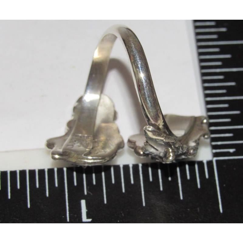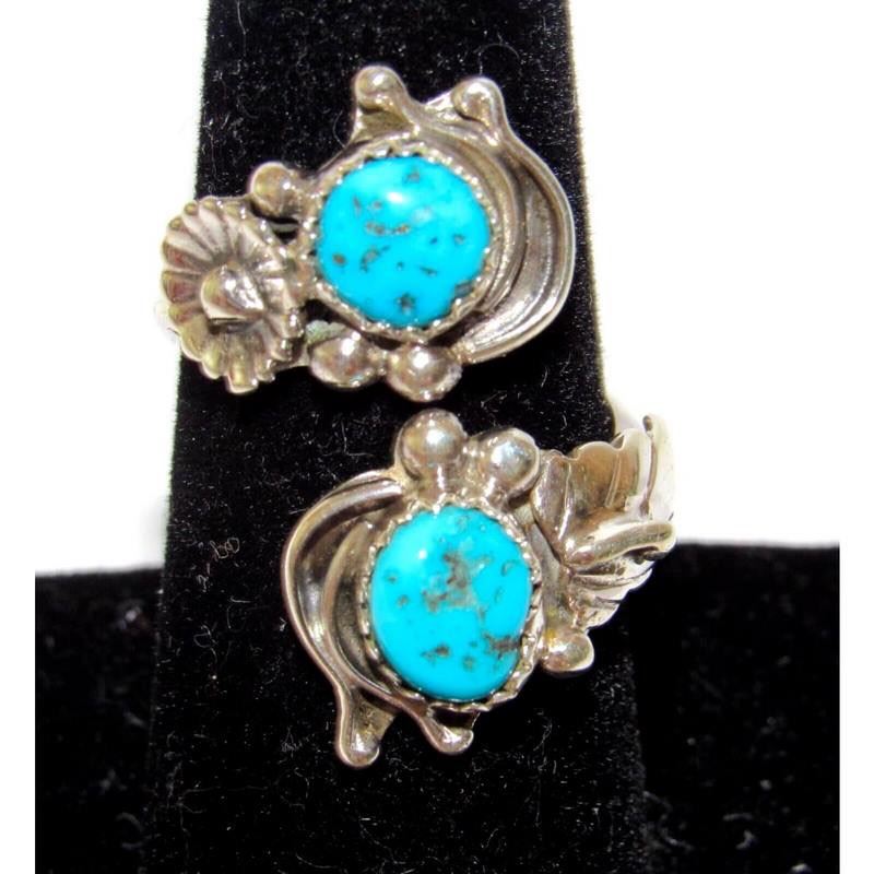 For your consideration is this stunning Navajo sterling silver and Kingman mine turquoise adjustable bypass ring in size 8, . The ring features intricately hand etched blossom design in sterling silver accented with 2 Kingman turquoise cabochons. Hallmarked. Superb craftsmanship. The ring is size 8, adjustable and measures about 1" tall on the front. Fab statement piece! FREE SHIPPING ON ALL JEWELRY ORDERS WITHIN THE US!