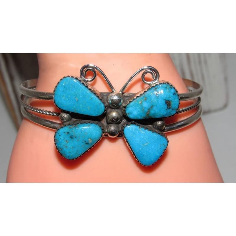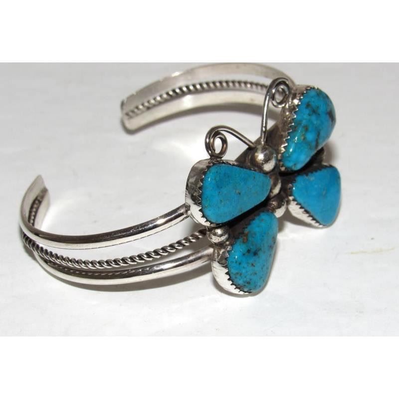 Navajo Kingman Turquoise Butterfly Cuff Bracelet Sterling Silver Signed