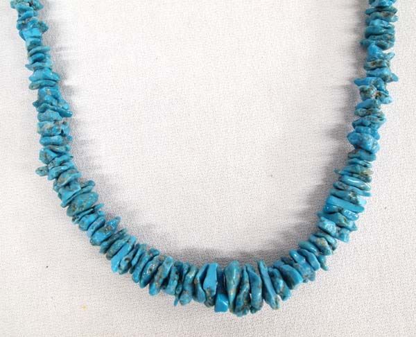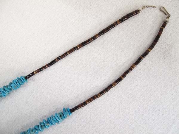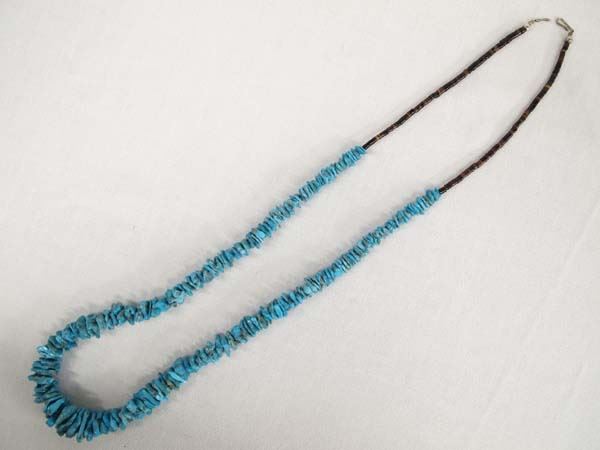 Native American Navajo Kingman Turquoise Nugget & Heishi Necklace, measures 32''L end to end x 1''