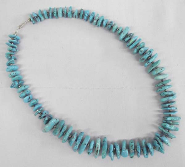 Native American Navajo Kingman Turquoise Nugget Necklace with sterling bead spacers. Measures approx. 23 1/4'' end to end. Buyers Pay Actual Shipping and Handling Charges(see terms and conditions for more information).