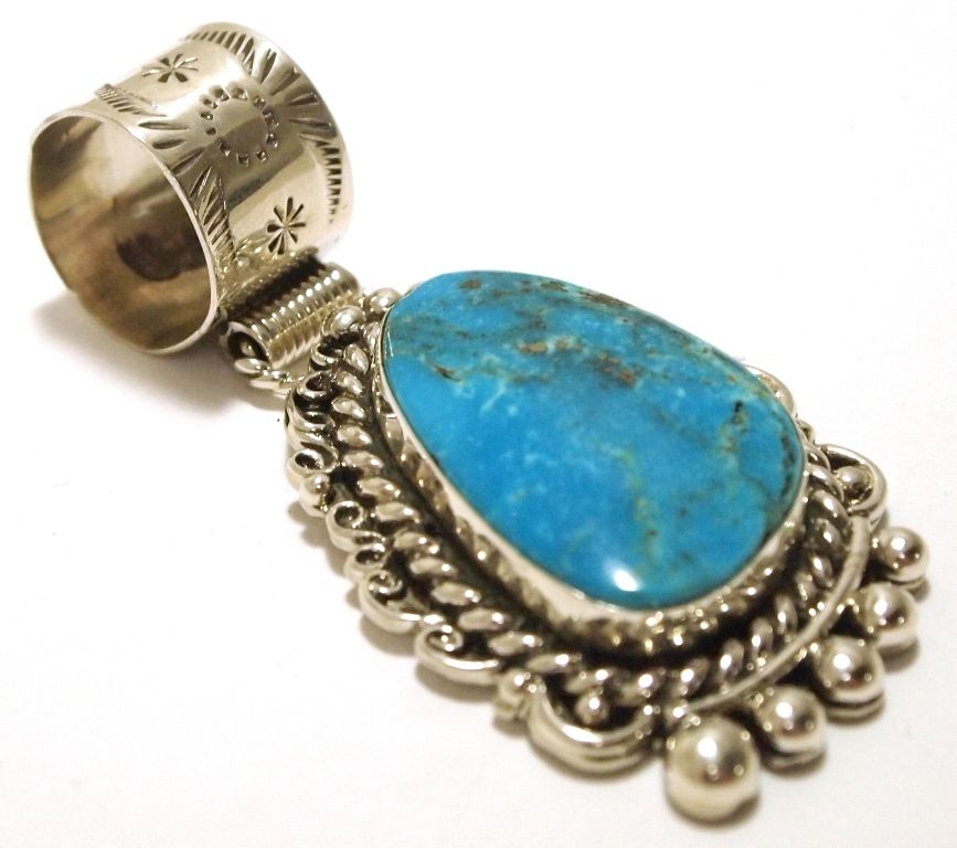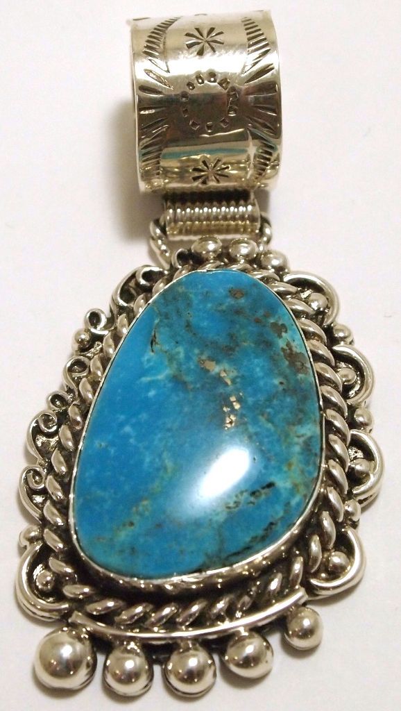Navajo Kingman Turquoise Sterling Silver Pendant - Vivian Jones