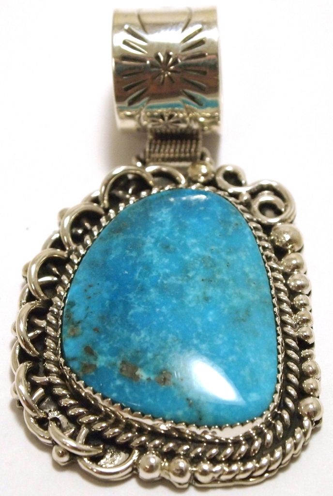 Navajo Kingman Turquoise Sterling Silver Pendant - Vivian Jones