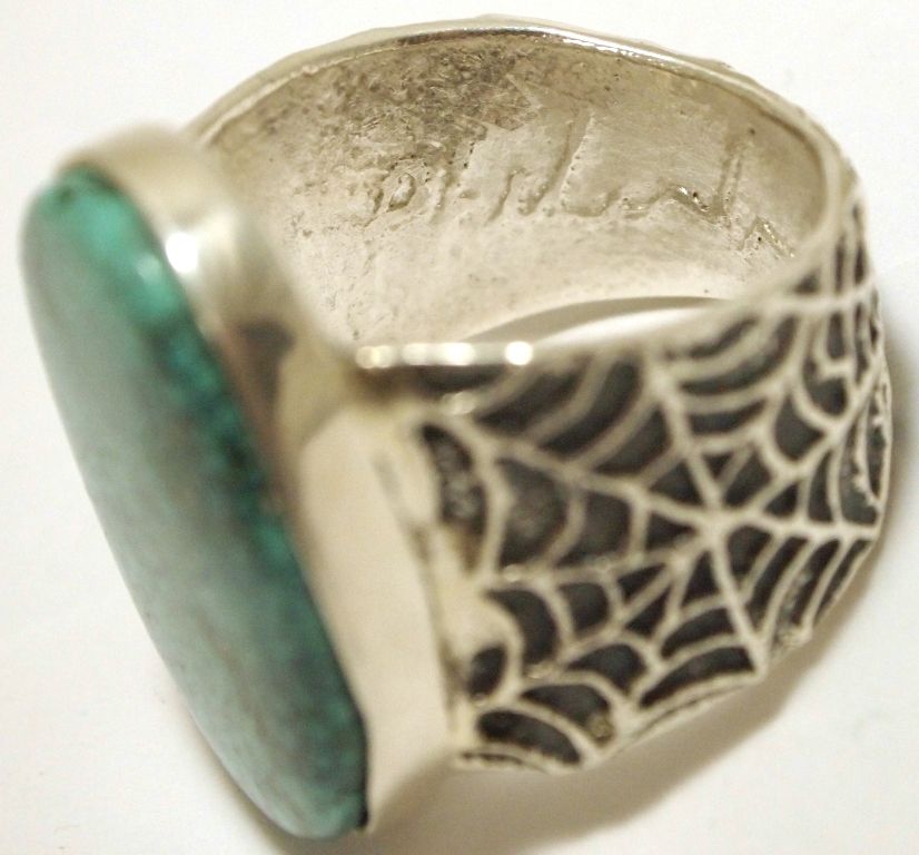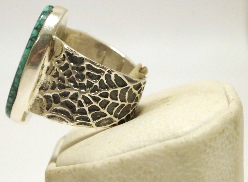 Navajo Kingman Turquoise Sterling Silver Tufacast Men's Ring - Philander B Begay