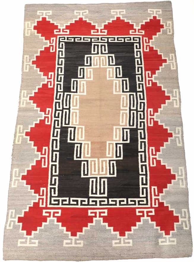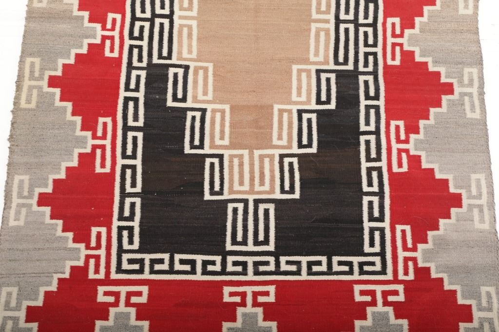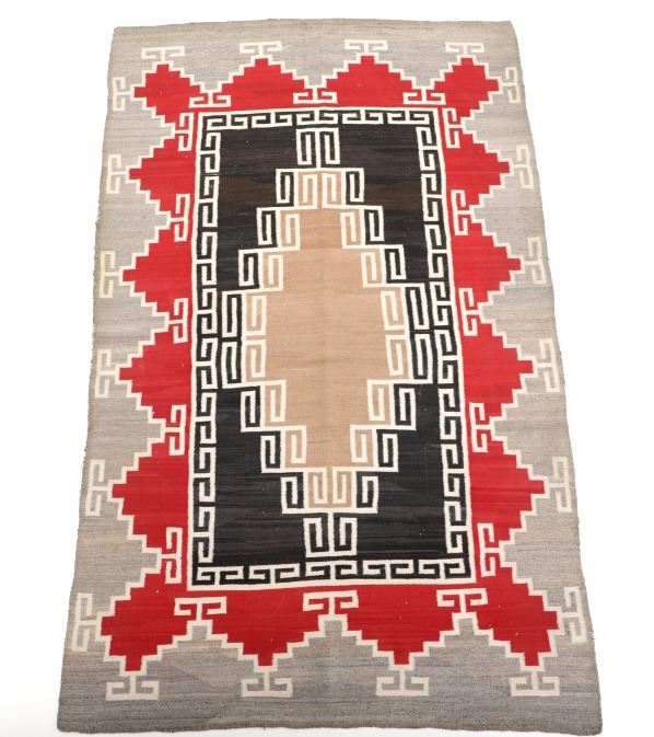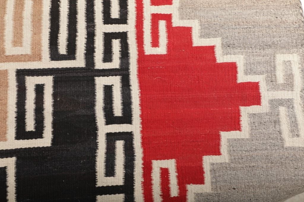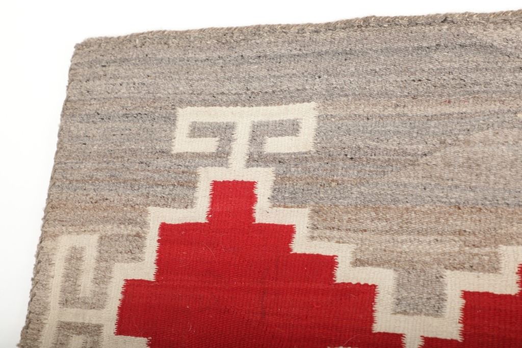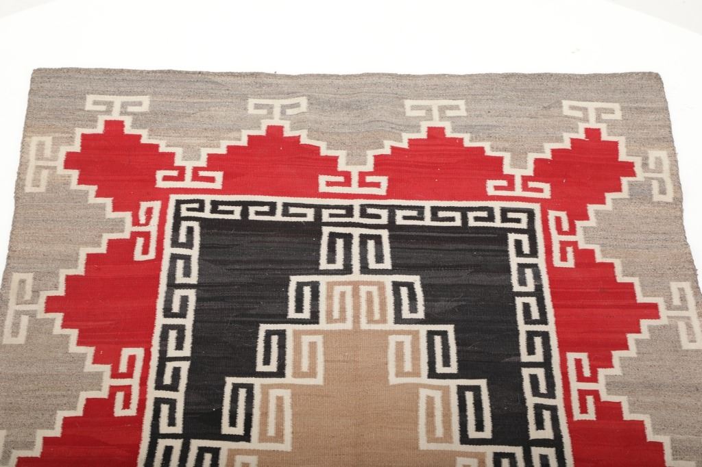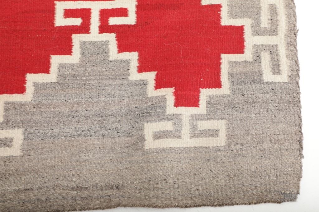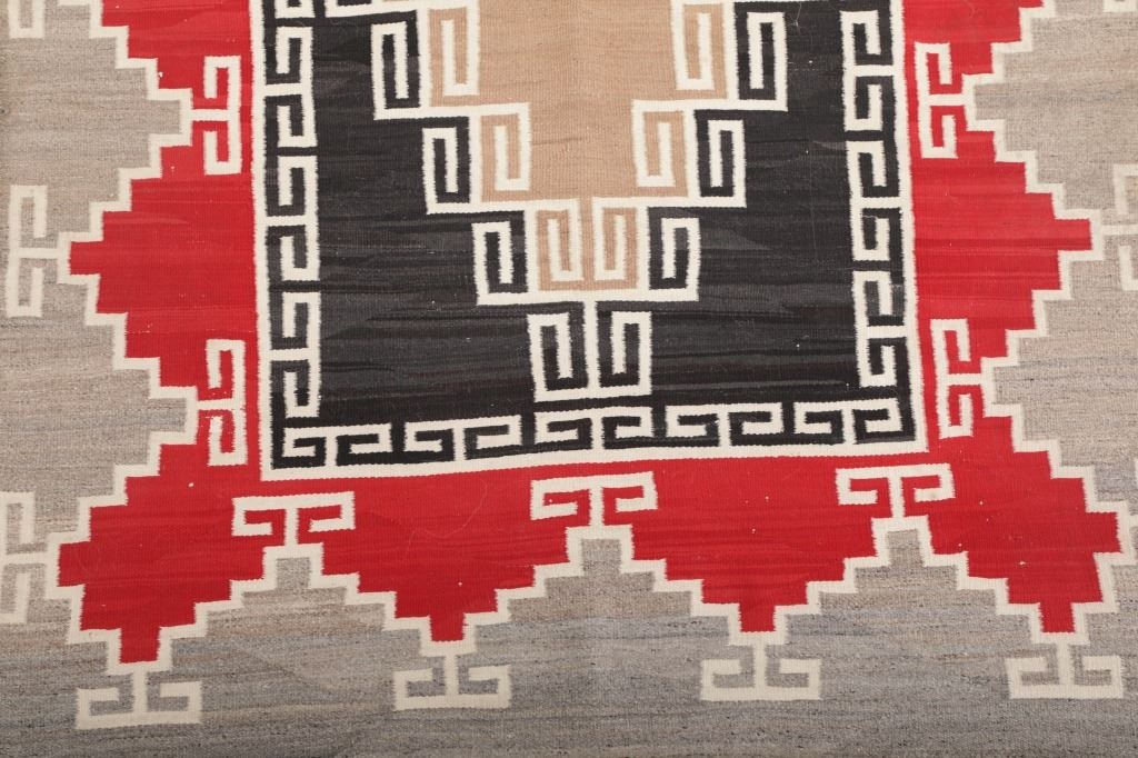 Featured in this lot is this Navajo Klagetoh Trading Post rug circa 1890-1910's The rug features a wonderfully and professionally crafted wool construction that features a traditional Klagetoh Trading Post design that shows a heathered grey field with a centeral medallion with coloration of off white, medium red, and black and the central medallion is large which takes up the majority of the rug. Klagetoh is located just south of Ganado and 10 miles north of Wide Ruins. The English translation is “hidden springs”. The Klagetoh weaving is very similar to the Ganado rugs, but with a predominantly gray background instead of the Ganado’s red. Some experts do not consider Klagetoh a specific regional rug but a sub-type of Ganado. The thread count of this rug is 200 threads per square inch. The condition of this Navajo Klagetoh rug is good the tassels missing off of all four corners of the rug but otherwise shows good overall condition. The measurements of this rug is 84" x 51 1/2". Provenance: From the renowned Sundog Fine Art Bozeman, Montana collection and collected by Bruce VanLandingham. Bruce VanLandingham was a pillar in the American Indian collecting community and a respected expert. Along with being an avid collector, Bruce also was the sole owner of Sundog Fine Art Gallery in Bozeman, which was both part museum and gallery.