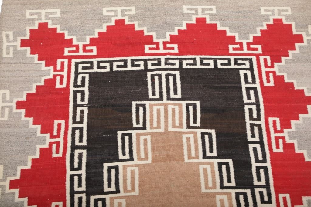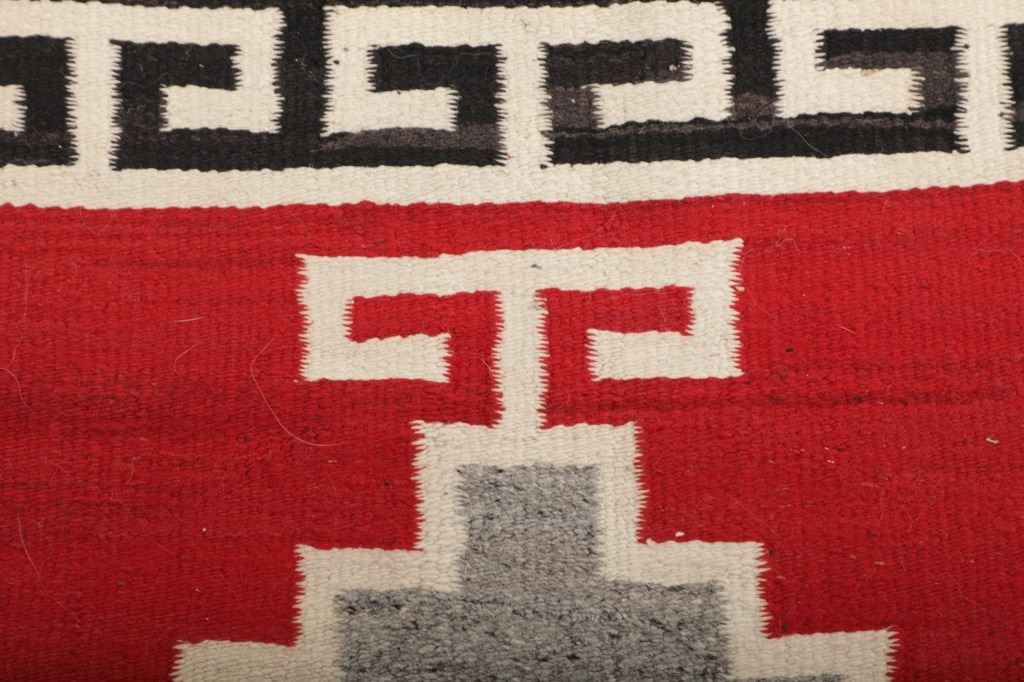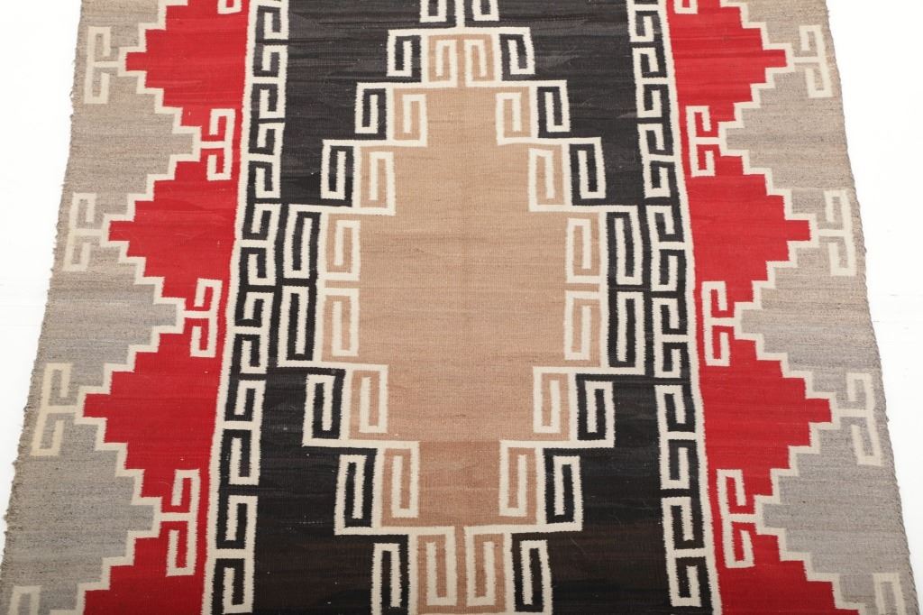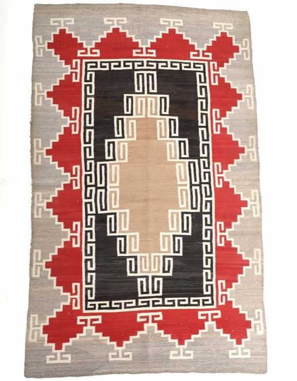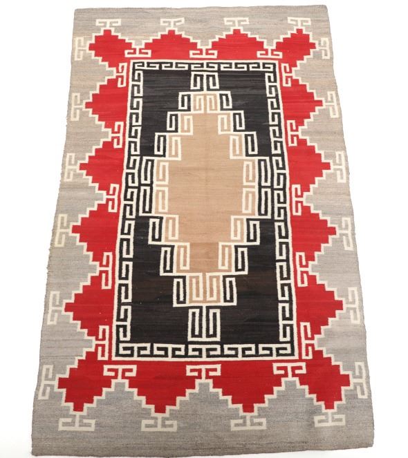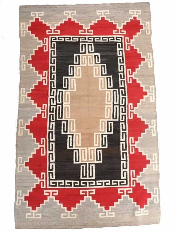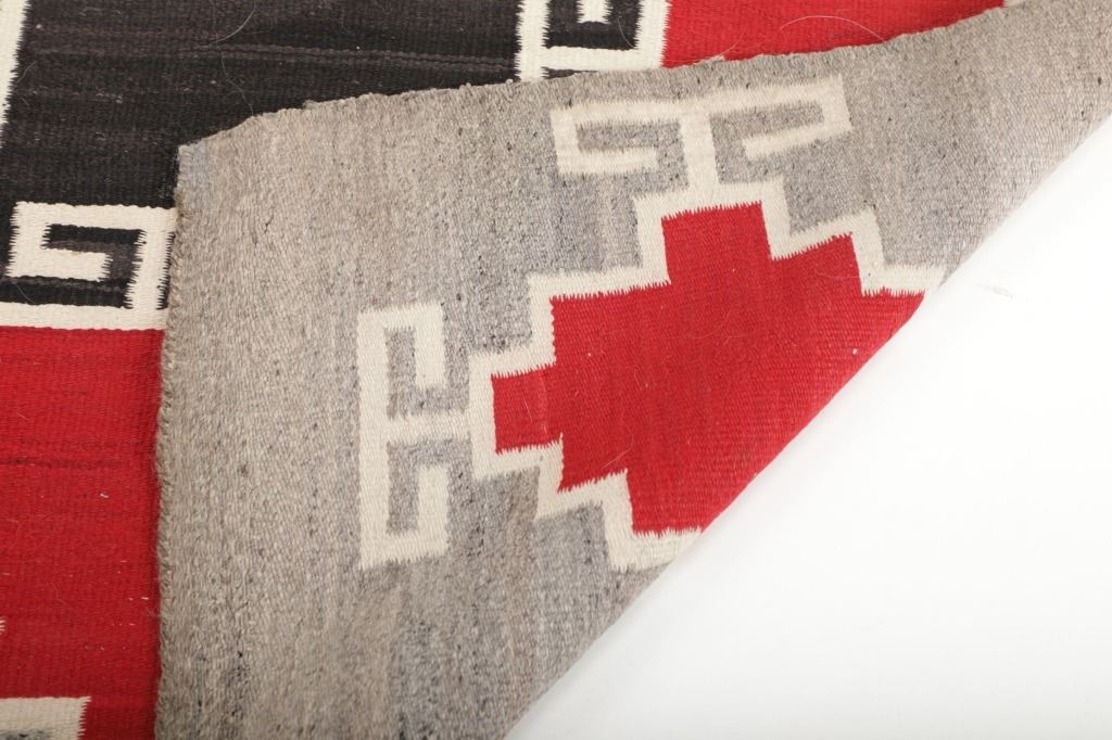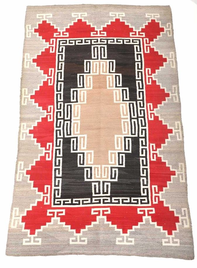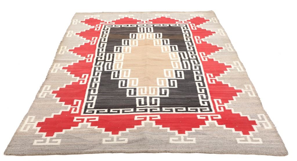 Featured in this lot is this Navajo Klagetoh Trading Post rug circa 1890-1910's The rug features a wonderfully and professionally crafted wool construction that features a traditional Klagetoh Trading Post design that shows a heathered grey field with a centeral medallion with coloration of off white, medium red, and black and the central medallion is large which takes up the majority of the rug. Klagetoh is located just south of Ganado and 10 miles north of Wide Ruins. The English translation is “hidden springs”. The Klagetoh weaving is very similar to the Ganado rugs, but with a predominantly gray background instead of the Ganado’s red. Some experts do not consider Klagetoh a specific regional rug but a sub-type of Ganado. The thread count of this rug is 200 threads per square inch. The condition of this Navajo Klagetoh rug is good the tassels missing off of all four corners of the rug but otherwise shows good overall condition. The measurements of this rug is 84" x 51 1/2". Provenance: From the renowned Sundog Fine Art Bozeman, Montana collection and collected by Bruce VanLandingham. Bruce VanLandingham was a pillar in the American Indian collecting community and a respected expert. Along with being an avid collector, Bruce also was the sole owner of Sundog Fine Art Gallery in Bozeman, which was both part museum and gallery.