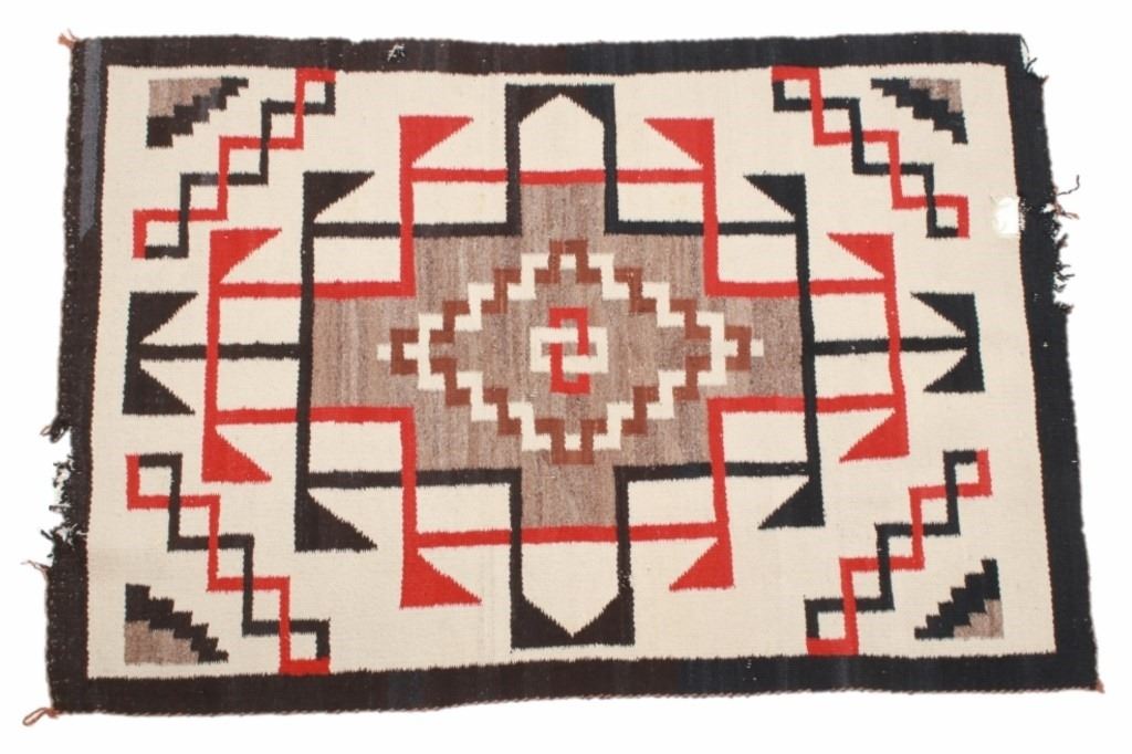 Featured in this lot is this Navajo Klagetoh trading post rug, circa 1920's. The rug features an off-white field with geometric patterns of red and black and a beautiful central medallion decoration. Klagetoh is located just south of Ganado and 10 miles north of Wide Ruins. The English translation is “hidden springs.” The Klagetoh weaving is very similar to the Ganado rugs, but with a predominantly gray background instead of the Ganado’s red. Some experts do not consider Klagetoh a specific regional rug, rather it is considered a sub-type of Ganado. The condition of this rug is fair, with significant wear to the rug consistent with the age of the rug. The measurements of this rug are 56" x 37 1/2".