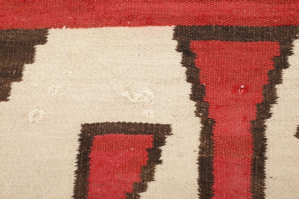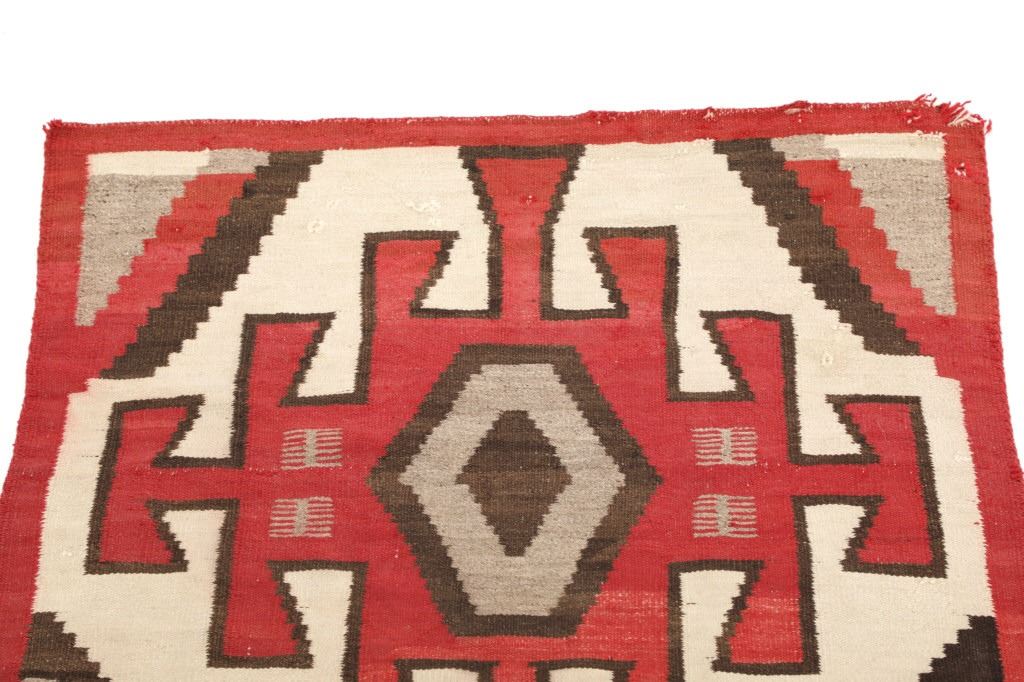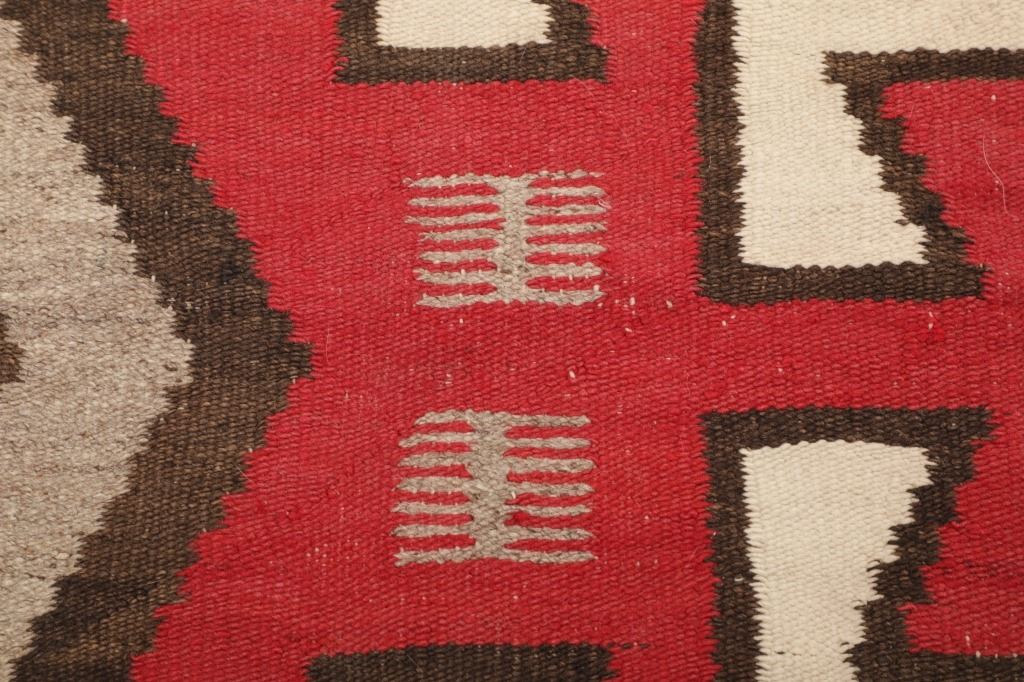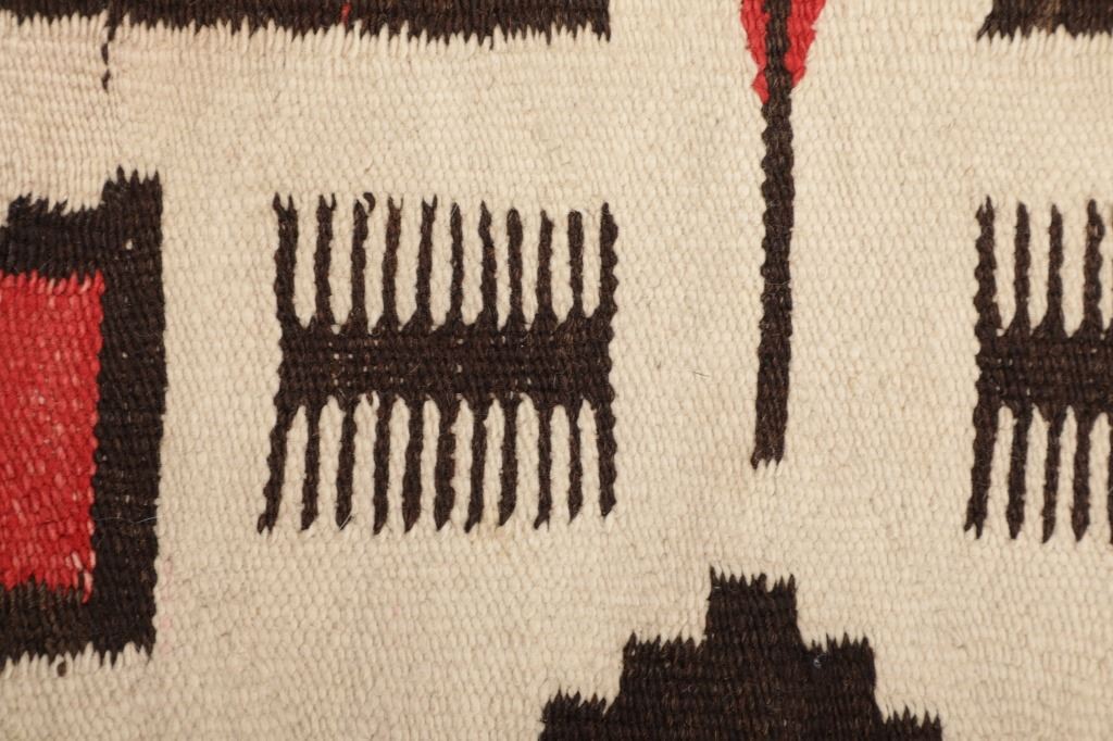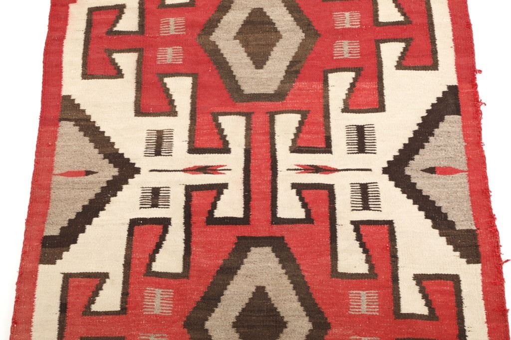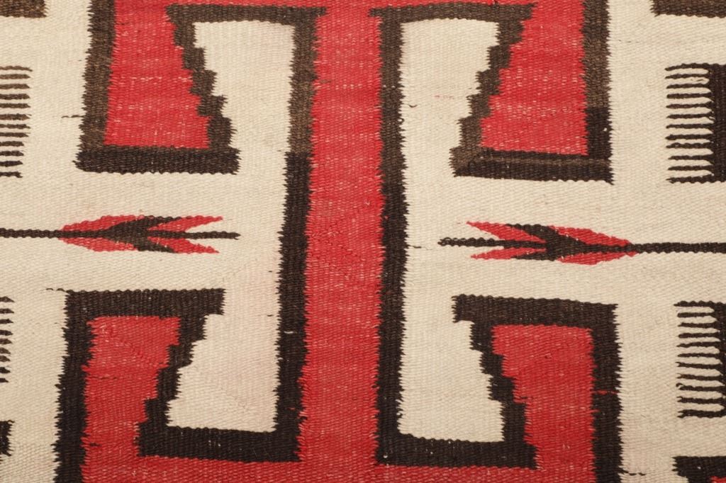 Featured in this lot is this Navajo Klagetoh Trading Post rug circa 1930's. The rug features a wonderfully and professionally crafted hand spun wool construction with a beautiful central motif and red aniline dyes set to a grey field and black lining accents to the central medallion and the stepped decorations in the shoulders. The rug features a Lazy Lines throughout the rug consistent with showing age and authenticity of the rug. Klagetoh is located just south of Ganado and 10 miles north of Wide Ruins. The English translation is “hidden springs”. The Klagetoh weaving is very similar to the Ganado rugs, but with a predominantly gray background instead of the Ganado’s red. Some experts do not consider Klagetoh a specific regional rug but a sub-type of Ganado. The rug shows accent lines that are impossible to recreate showing this rug to be an original weaving with no apparent repairs to the rug. The condition of this rug is this good with some wear to the coloration of the rug but otherwise shows good overall condition. The measurements of this rug are 71" x 44". The thread count is 254 threads per square inch.