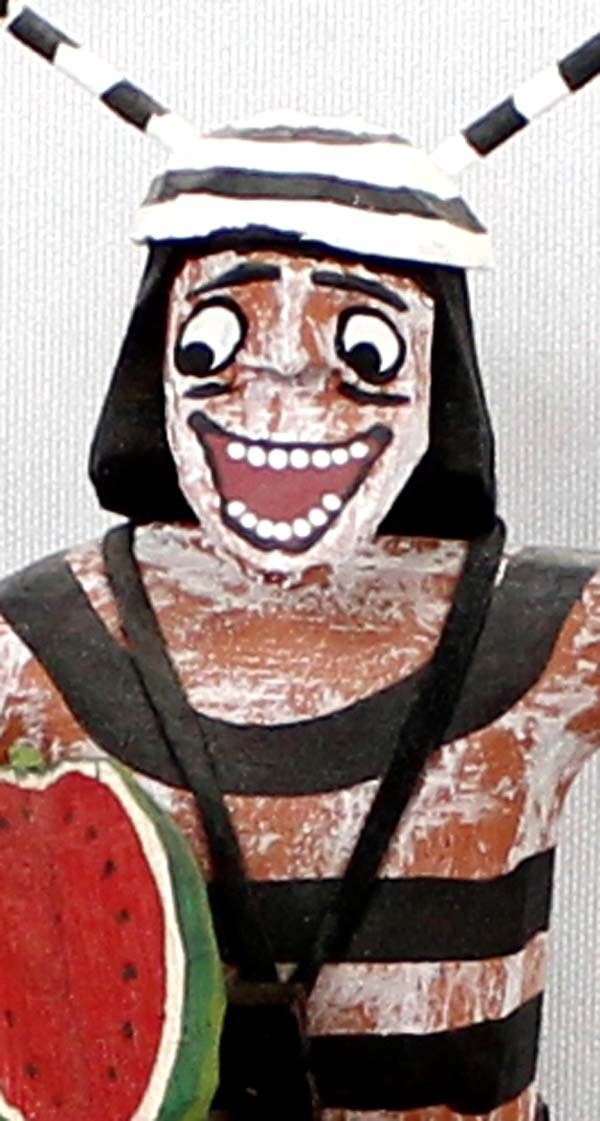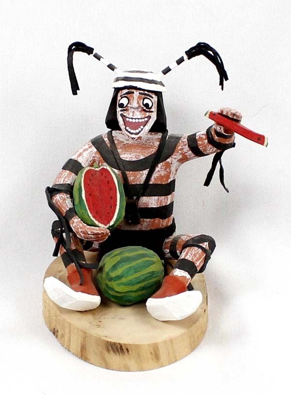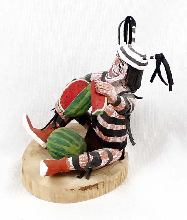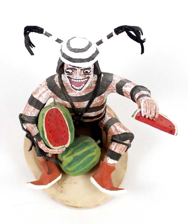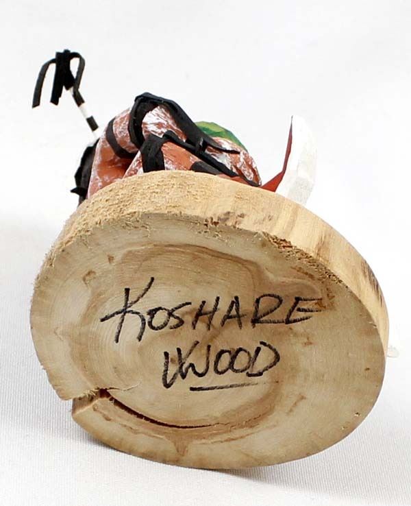 Native American Navajo Koshare Clown by Virgil Wood, measures 4'' x 5'' x 4'' and is signed on the bottom