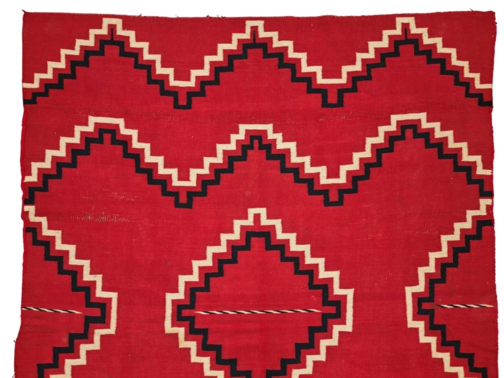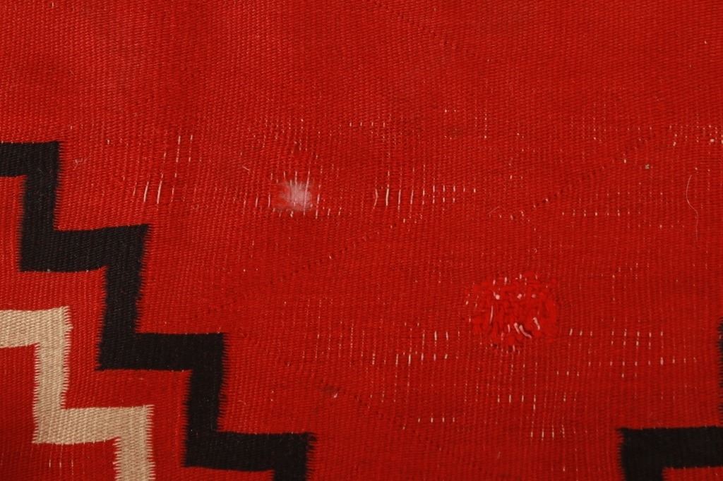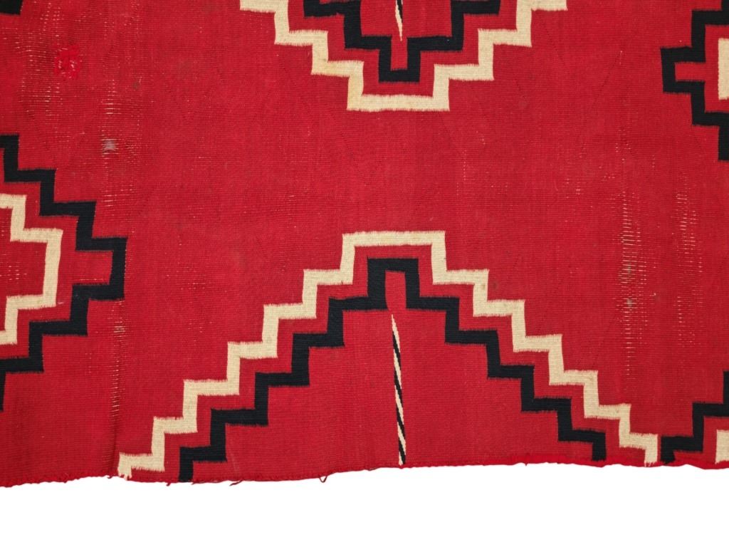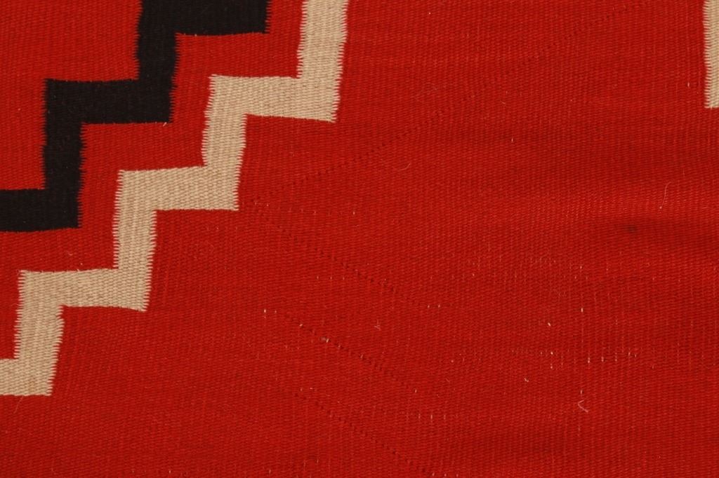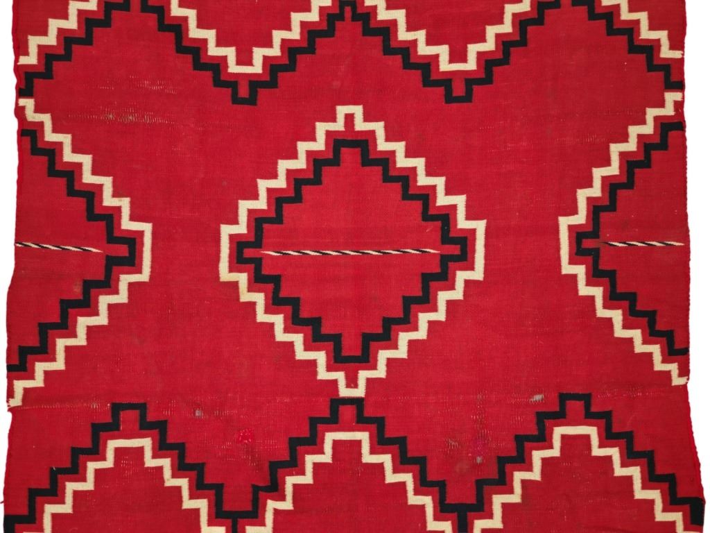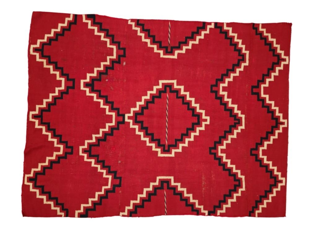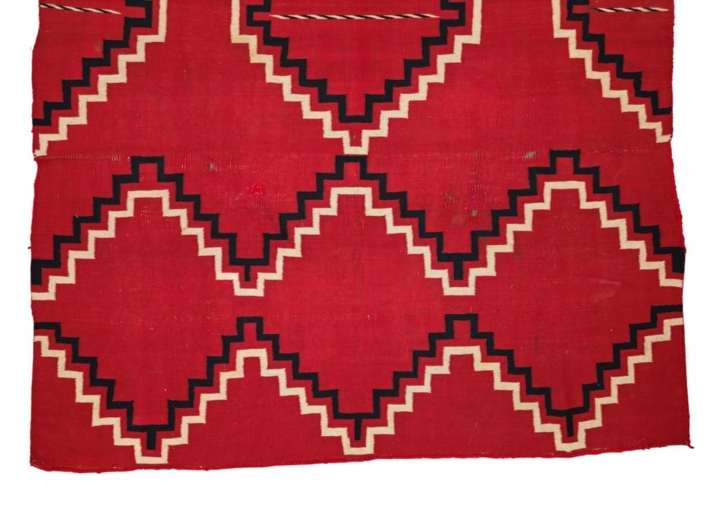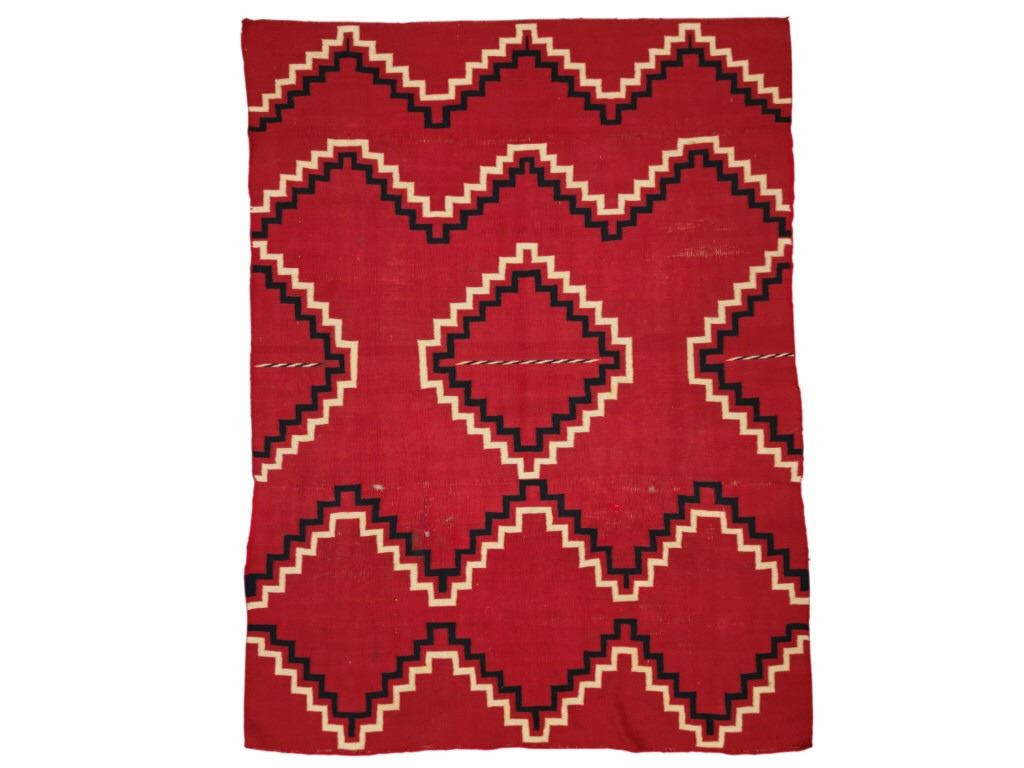 The lot features a beautiful late classic / early transitional late-19th century blanket. The blanket shows a soft tight wool construction with wonderful pattern which dates to the late classic men’s serape to early transitional era circa 1870-1880's. The blanket shows natural hand spun wools, lazy lines and rich natural colors with raveled dyes as well. The condition of the rug is well preserved with only slight wear to the weaving but otherwise shows a well preserved condition. The measurements of this rug are 85" x 65". Provenance: From a prominent ex-Bozeman private collection who purchased the majority of his collection from Cowan's, Skinner, Bonham's, Morphy's, Sotheby's, March in Montana, North American Auction and other well revered auction houses. The rug was featured in the March in Montana Auction.*