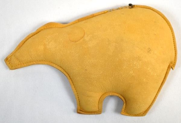 Native American Navajo Leather and Sand Bear Bag, measures 7'' x 10''