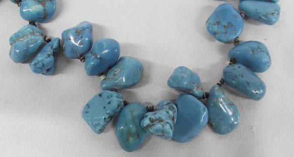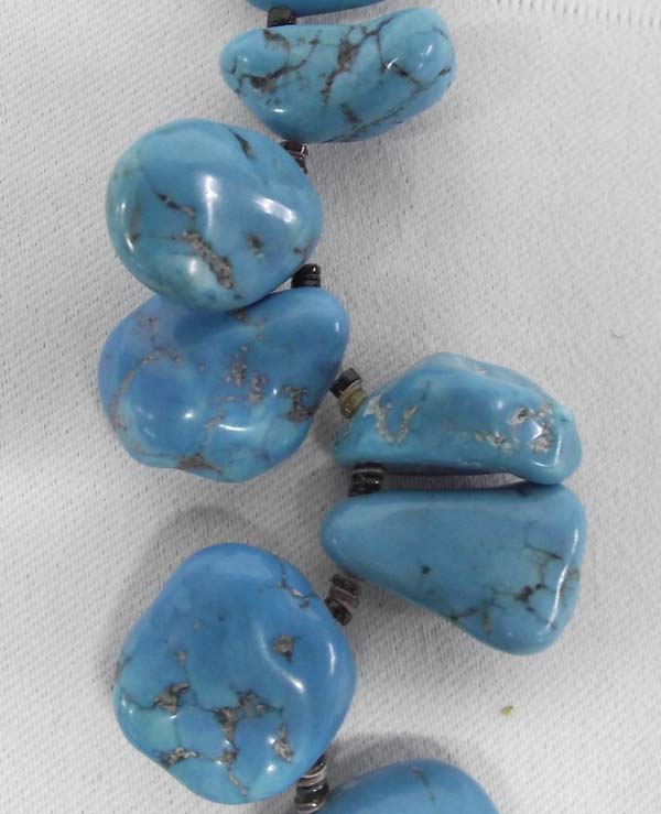Navajo Magnesite Nugget Necklace. Native American Indian made by artist Karen Gray from Church Rock N.M. Beautiful turquoise colored magnesite nuggets with brown pin shell necklace with sterling silver findings, measures end to end approx. 28 inches. Buyers Pay Actual Shipping and Handling Charges(see terms and conditions for more information).