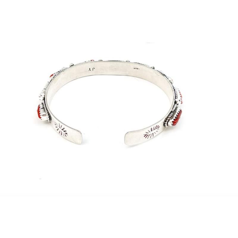 Navajo Mediterranean Coral Stacker Cuff Bracelet Sterling Silver Native American