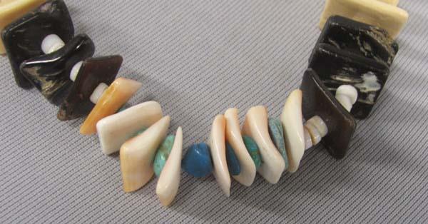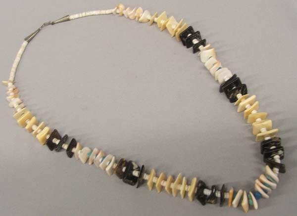 Navajo Melon Shell Jet Turquoise Tab Necklace, measures approx. 29''. SHI $15.